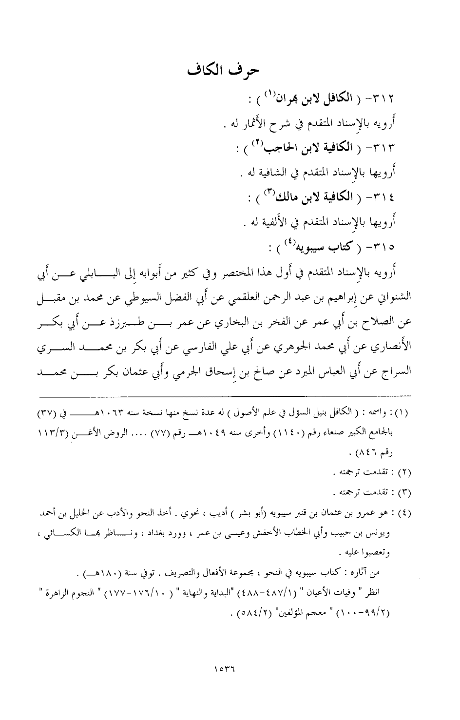 (¬4) هو عمرو بن عثمان بن قنبر سيبويه (أبو بشر) أديب، نحوي. أخذ النحو والأدب عن الخليل بن أحمد ويونس بن حبيب وأبي الخطاب الأخفش وعيسى بن عمر، وورد بغداد، وناظر ها الكسائي، وتعصبوا عليه.