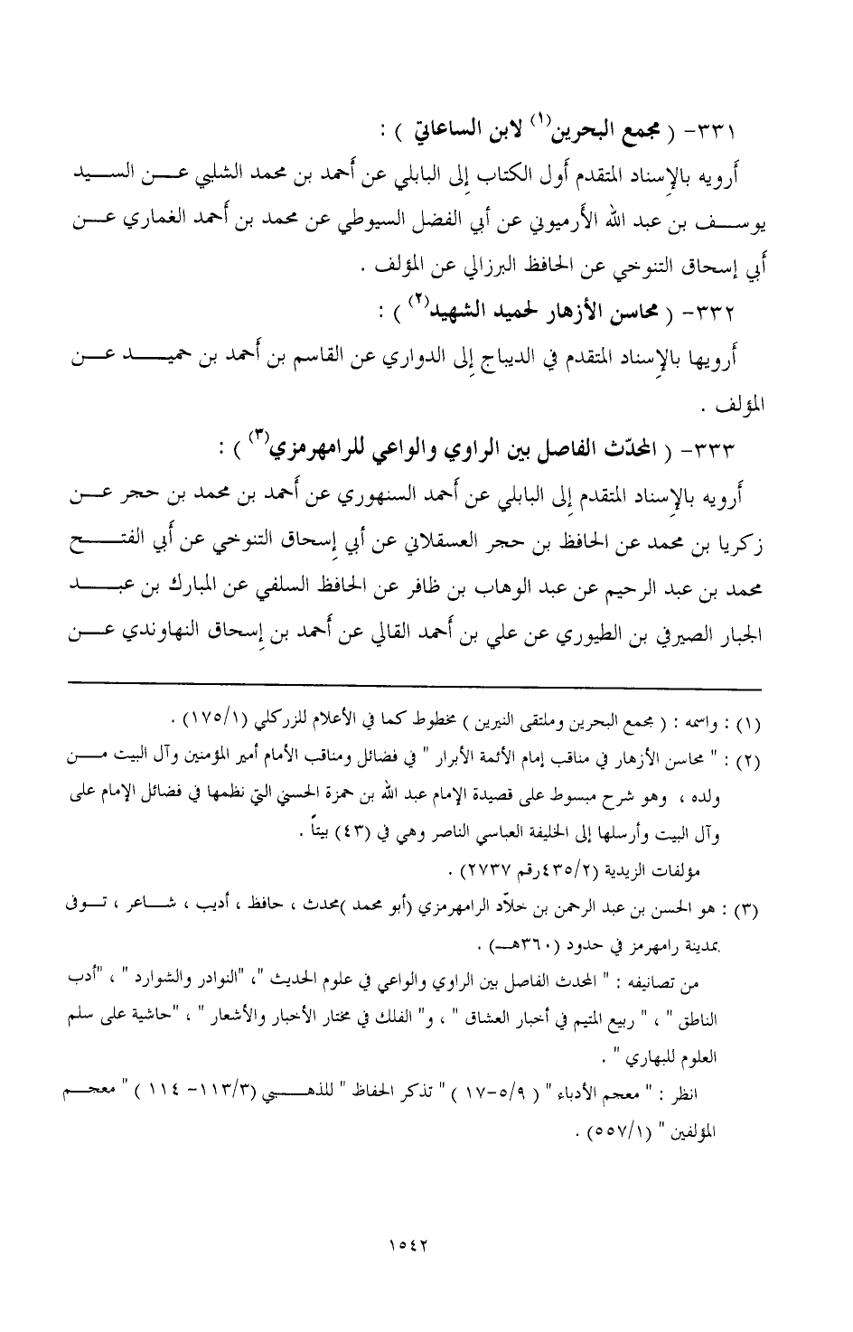 333 - (المحدث الفاصل بين الراوي والواعي للرامهرمزي (¬3)): ارويه بالإسناد المتقدم إلى البابلي عن أحمد السنهوري عن أحمد بن محمد بن حجر عن زكريا بن محمد عن الحافظ بن حجر العسقلاني عن أبي إسحاق التنوخي عن أبي الفتح محمد بن عبد الرحيم عن عبد الوهاب بن ظافر عن الحافظ السلفي عن المبارك بن عبد الجبار الصيرفي بن الطيوري عن على بن أحمد القالي عن أحمد بن إسحاق النهاوندي عن