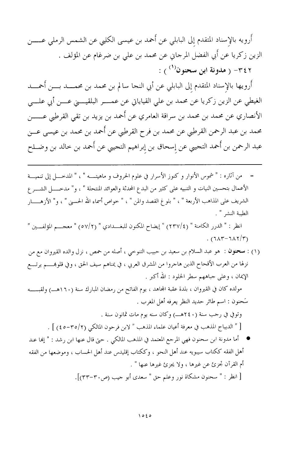 [انظر: " سحنون مشكاة نور وعلم حق" سعدي أبو جيب (ص 30 - 33) ......