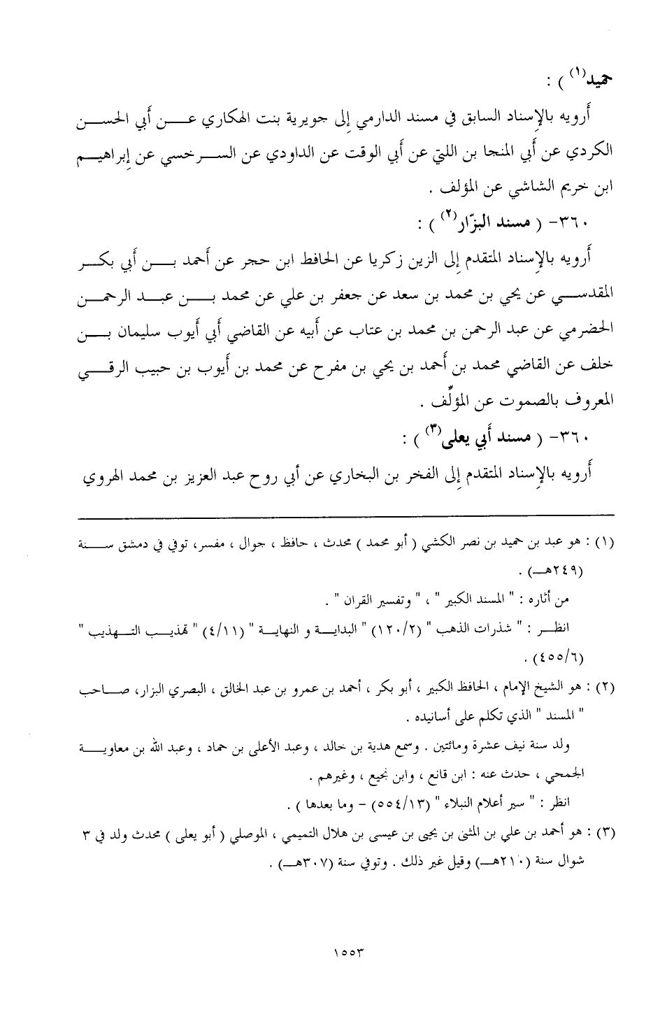 (¬3) هو أحمد بن على بن المثني بن يحي بن عيسى بن هلال التميمي، الموصلي (أبو يعلى) محدث ولد في 3 شوال سنة (210 هـ) وقيل غير ذلك. وتوفي سنة (307 هـ)