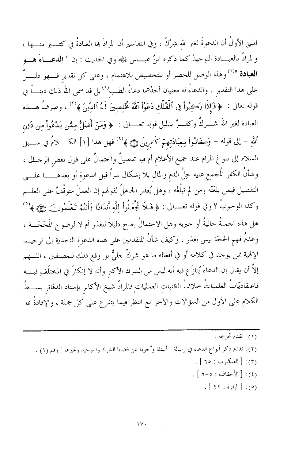 (¬2) تقدم ذكر أنواع الدعاء في رسالة " أسئلة وأجوبة عن قضايا الشرك والتوحيد وغيرها " رقم (1).