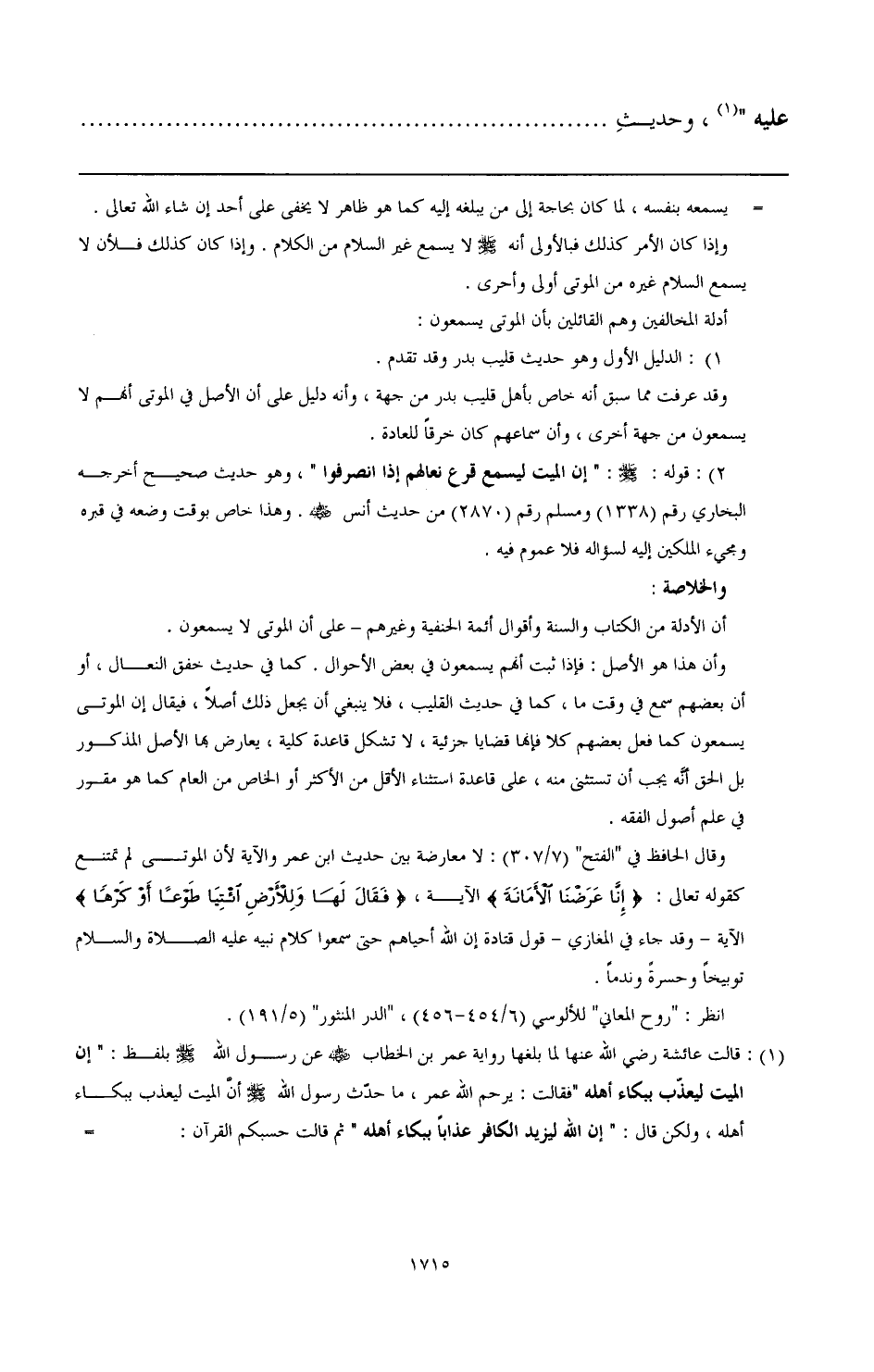 وأما قول عمر: "لا نترك كتاب ربنا وسنة نبينا لقول امرأة لا ندري أحفظت أم نسيت" - أخرجه مسلم رقم (46/ 1480) - فهذا تردد منه في حفظها، وإلا فإنه قد قيل عن عائشة وحفصة عدة أخبار، وتردده في حفظها عذر له في عدم العمل بالحديث، ولا يكون شكه حجة على غيره.