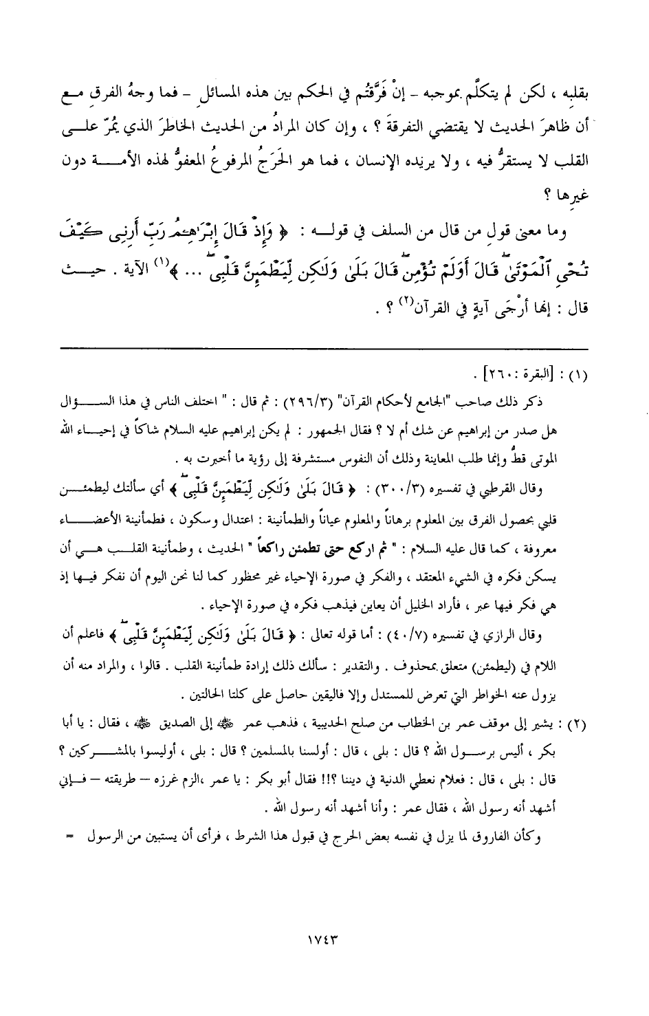 وكذلك ما وقع في نفوس بعض الصحابة -رضي الله عنهم- يوم الحديبية (¬1) كعمر، وغيره.