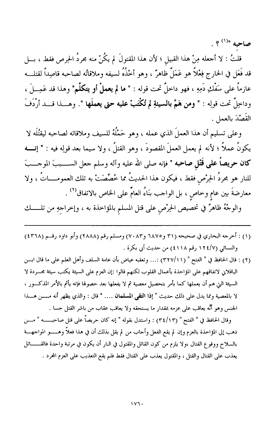 العمومات لما في إراقة دم المسلم من عظم الذنب الذي لا يماثله فيه غيره من الذنوب التي يرتكبها المسلمون بعد الإسلام مما ليس بشرك.
