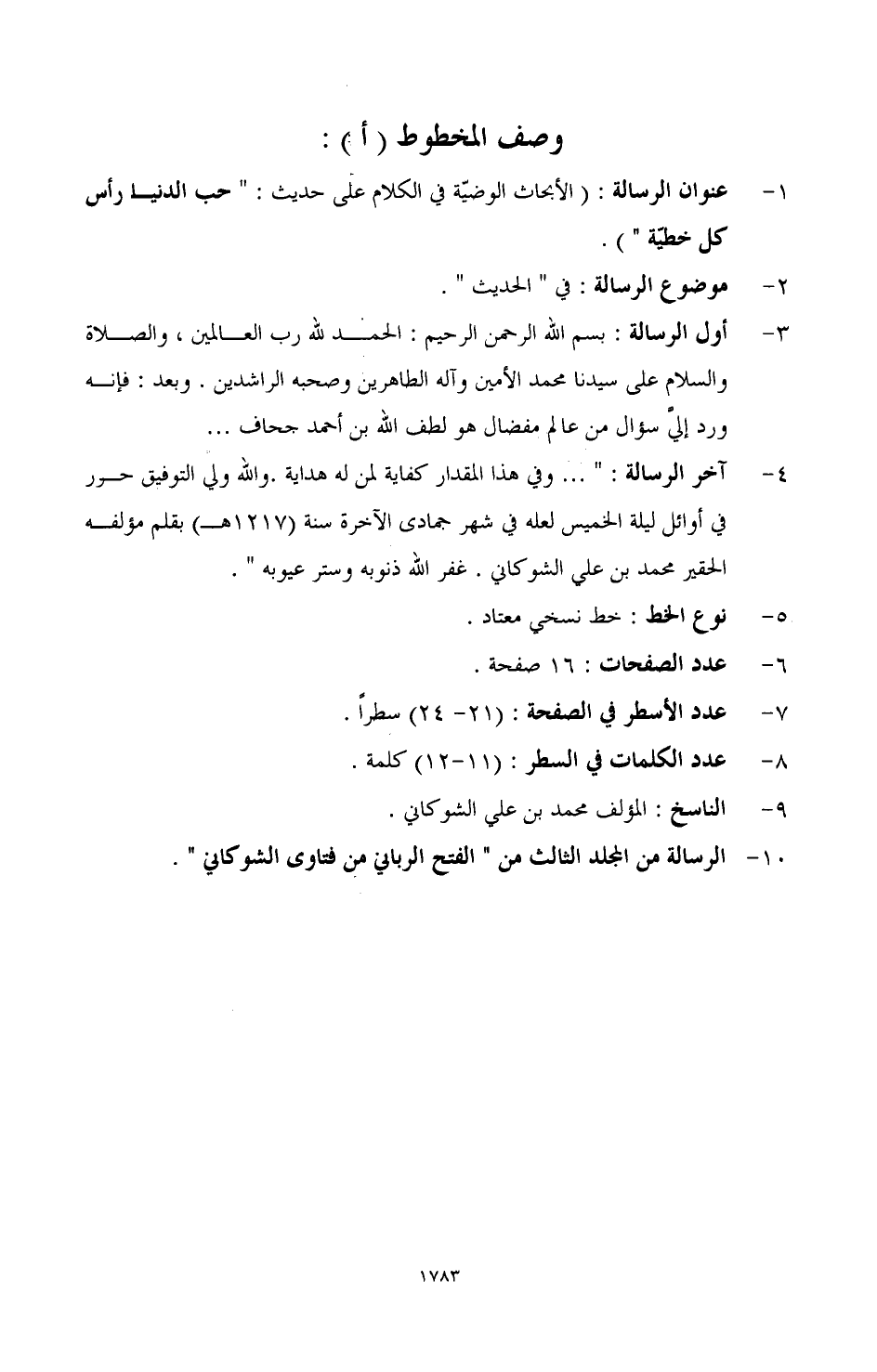 الأبحاث الوضية في الكلام على حديث حب الدنيا رأس كل خطية