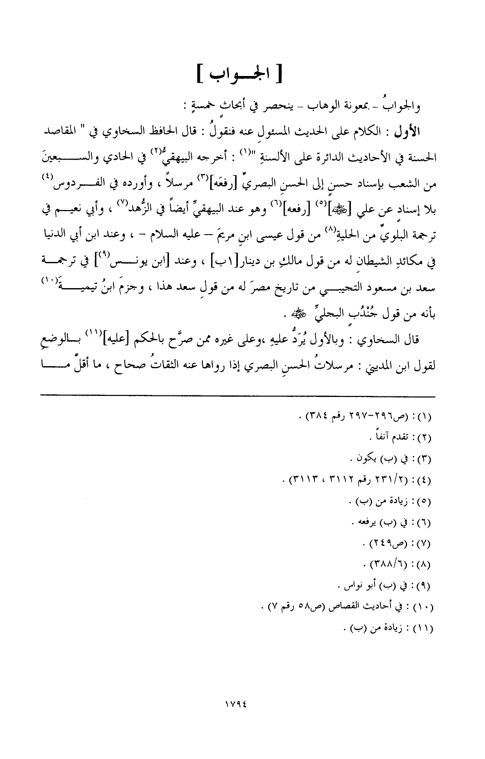 قلت: فعلى هذا يكون الحديث مرسلا قويا؛ لأنه قد تقوى بما تقدم ذكره، ولا ينافي رفعه وقف من وقفه على بعض الصحابة، أو على من بعدهم، فقد يتكلم الصحابي أو التابعي بالحديث [2] النبوي من دون أن يرفعه، إما لإخراجه مخرج الأمثال المرسلة، أو [لكون] (¬2) المقام ليس مقام [الرواية] (¬3)، أو [لكون] (¬4) الحديث مشتهرا شهرة تغني عن رفعه، وعلى كل حال فمعناه صحيح، وقد ورد ما يشهد له ويقويه كحديث: (الدنيا ملعونة وملعون ما فيها، إلا ذكر الله [وما والاه] (¬5) أو عالم أو متعلم)، وهو في السنن (¬6).