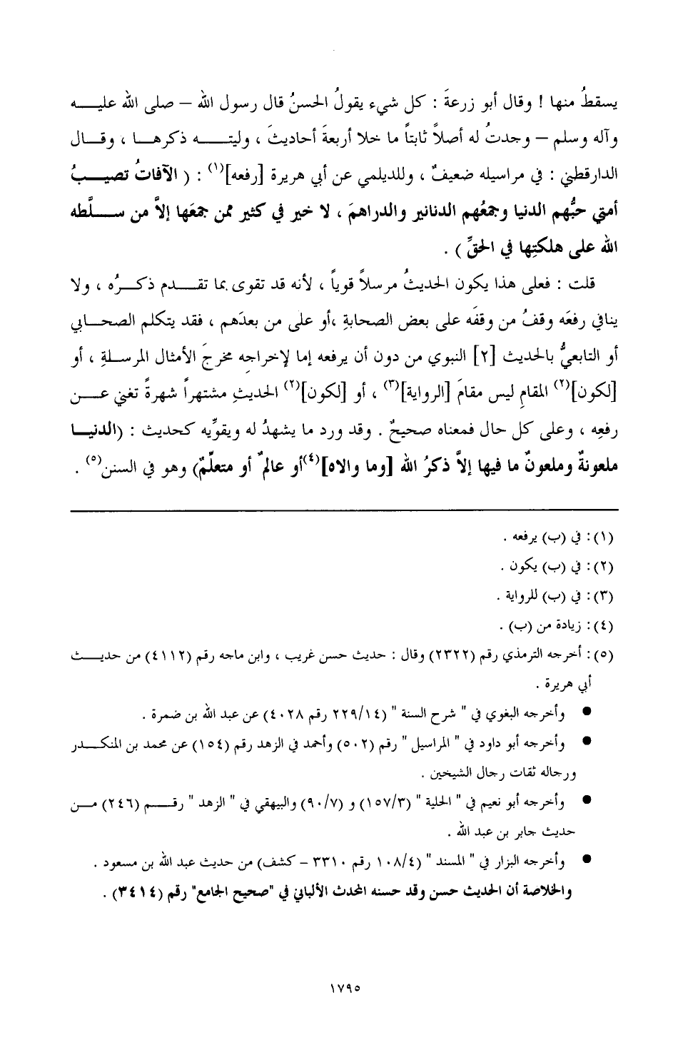 وحديث: (الدنيا خضرة حلوة، وإن الله مستخلفكم فيها، فناظر كيف تعملون؟) أخرجه مسلم (¬1)، والنسائي (¬2)، وغيرهما (¬3) من حديث أبي سعيد الخدري.