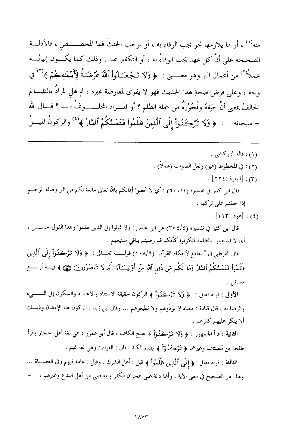 اليسير، وهو يشمل الأحوال حتى المجالسة والزيارة، فضلا عن المداهنة والرضى بالأعمال، فكيف يقبل عهده فضلا أن يتعهد له؟ وثلاث من كن فيه [1 أ] كن عليه: الثالثة: النكث، قال تعالى: {فمن نكث فإنما ينكث على نفسه} (¬1)، وقد ورد أن خلف الوعد ثالث النفاق إشارة إلى حديث: " آية المنافق (¬2) ثلاث "، فكيف بنكث العهد؟ وفي الكشاف (¬3) حديث رواه لا أدري صحته: " أسرع الخير ثوابًا صلة الرحم، وأعجل الشر عقابًا البغي واليمين الفاجرة " (¬4) انتهى، فأحسنوا بالإفادة لا برحتم، انتهى السؤال.