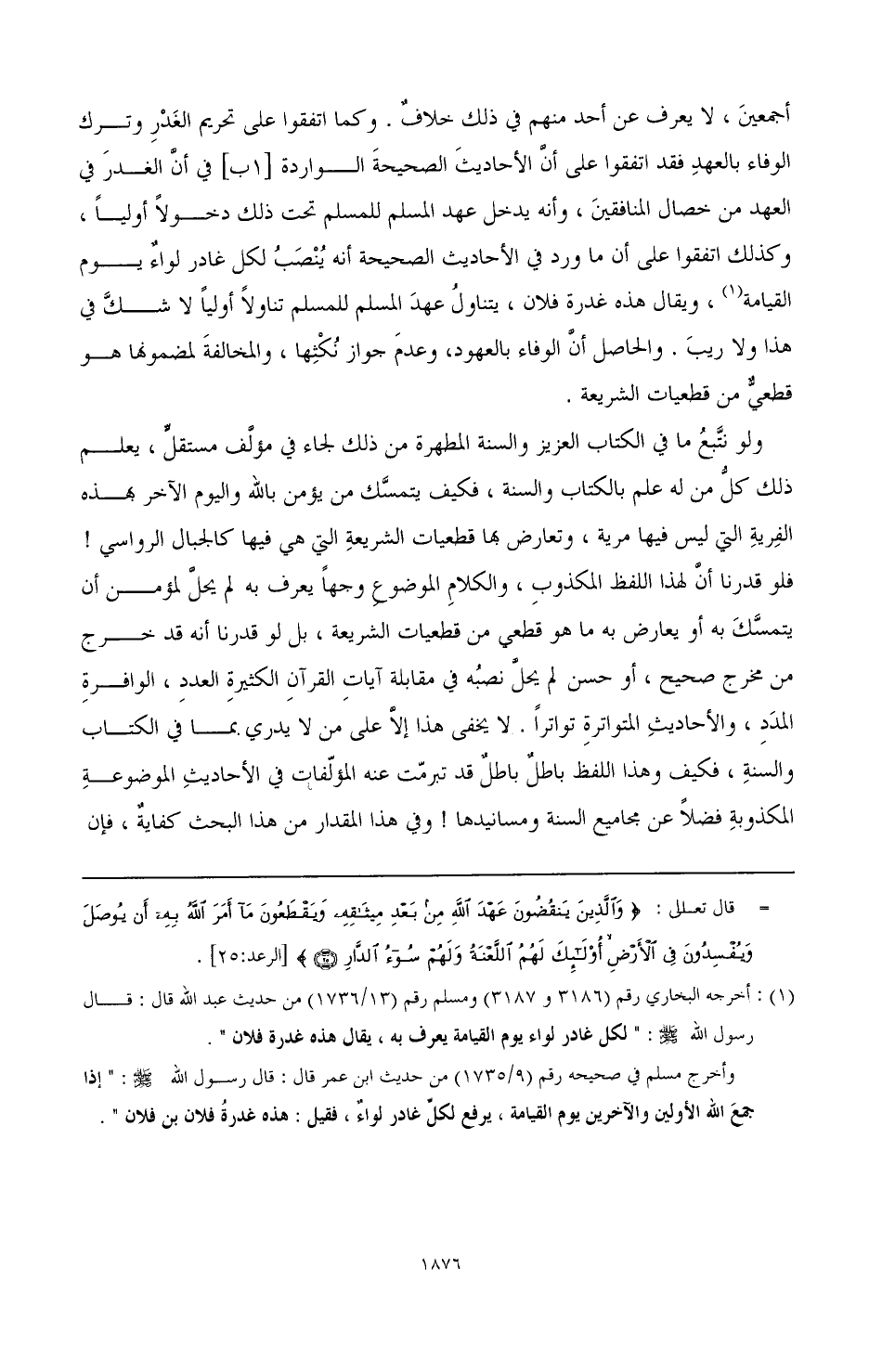 البحث الثاني: اعلم أن العهد قد يظن كثير من الناس أن المراد به اليمين لا غير، وهو ظن فاسد وتخيل مختل، فالعهد يطلق في الغالب على الأمان، وأكثر الآيات والأحاديث واردة في العهد بهذا المعنى، وورد بمعنى [2 أ] الوصية، ومنه حديث علي بن أبي طالب رضي الله عنه: " إنه لعهد النبي الأمي أن لا يجني إلا مؤمن " (¬1) الحديث.
