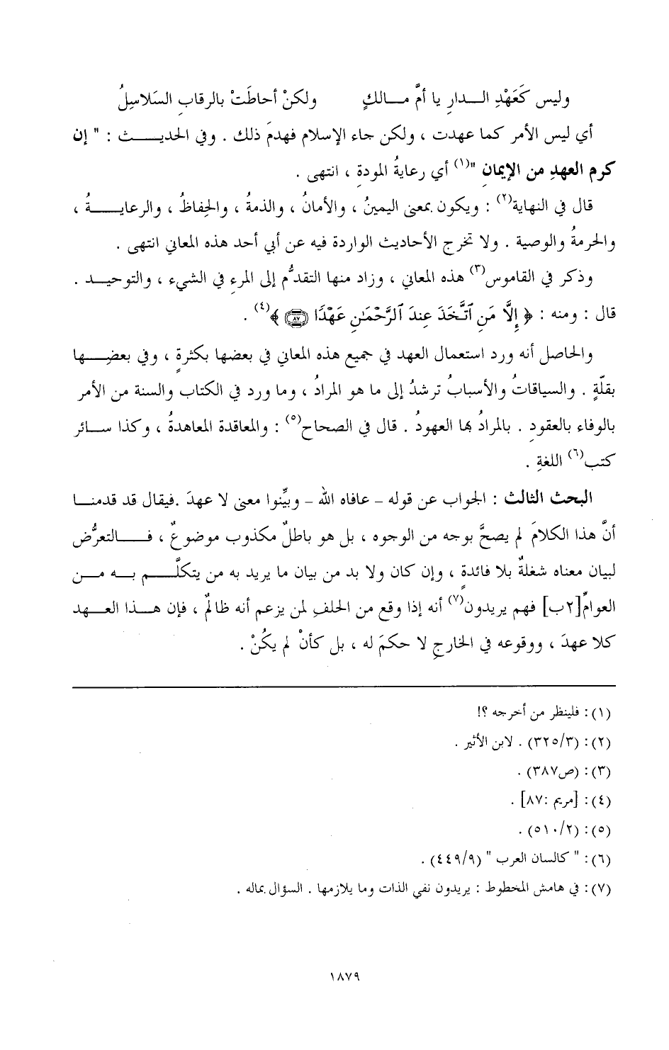 البحث السادس: الجواب عن قوله: " ثلاث من كن فيه كن عليه " إلخ، فيقال: لم يكن هذا اللفظ حديثًا ولا مرويًا عن صحابي، ولكن قال بعض العلماء: ثلاث يعود
