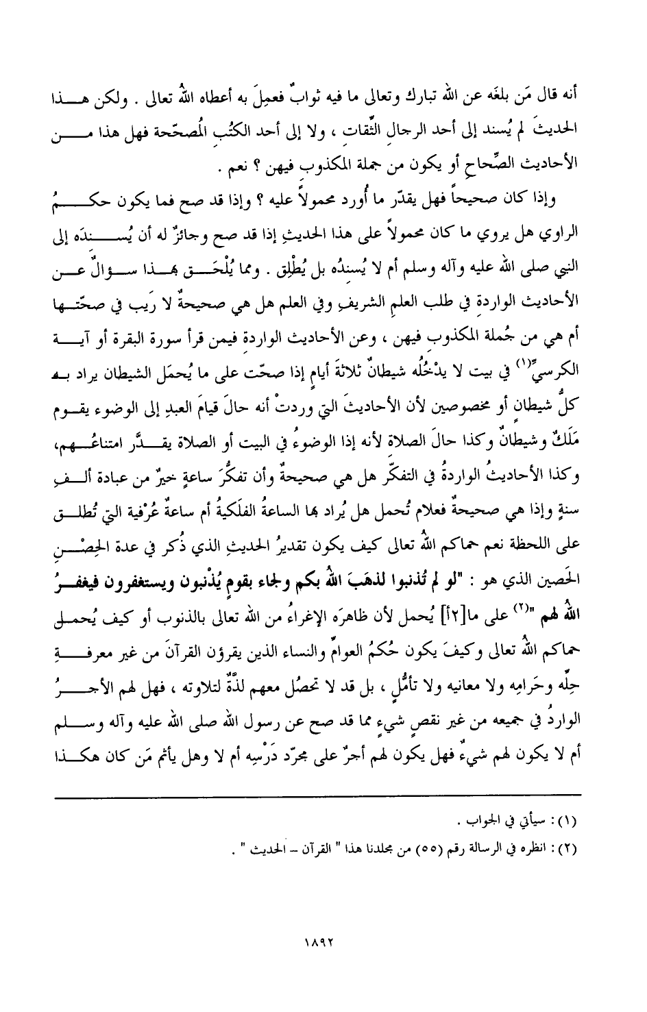 وعن الحسن قال قد قرأ هذا القرآن عبيد وصبيان لا علم لهم بتأويله، وإنما حفظوا حروفه وضيعوا حدوده حتى إن أحدهم ليقول: والله لقد قرأت القرآن فما أسقطت منه حرفًا، وقد والله أسقطه كله ما يرى للقرآن عليه أثر في خلق ولا عمل، والله ما هو إلا يحفظ حروفه وأضاع حدوده لا كثر الله تعالى في الناس من هؤلاء هذا لفظه فأحسنوا بجواب حاوٍ لكل مسألة إلى رأسها لتكمل الفائدة، وحاو لجميع المسئولين عنه جزاكم الله تعالى خير الدارين ويكون من غير عجل ليحصل جواب شافٍ يعمل به ويعتمد عليه، ويكون حجة على من أراد فعل ما جزمتم بعدم صحته من غير عجل، ومن غير إهمال ولا أن يحتاج السائل إلى معاودتكم للجواب بل ميعاد لا اختلاف فيه فالمؤمن إذا قال صدق، وليكمل لكم الأجر إن شاء الله تعالى وصلى الله على سيدنا محمد وآله وسلم والسلام عليكم ورحمة الله وبركاته، والله الهادي إلى الصواب ولا حول ولا قوة إلا بالله العلي العظيم انتهى السؤال بلفظه وحروفه [2 ب].