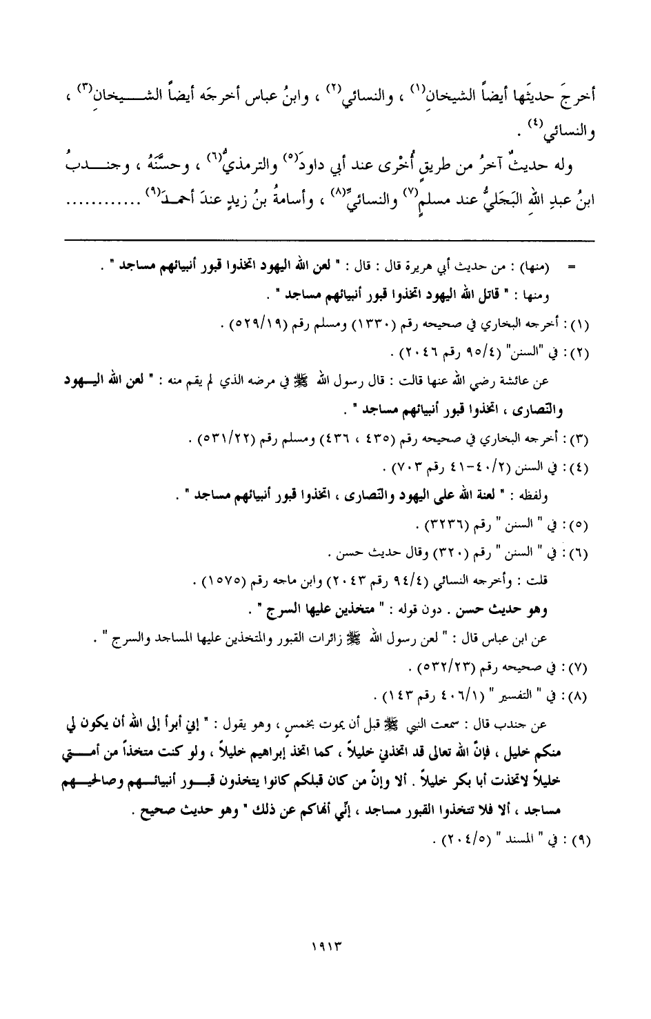 (¬4) في "المعجم الكبير" (10/ 332 رقم 10413) عن عبد الله قال: سمعت رسول الله - صَلَّى اللهُ عَلَيْهِ وَسَلَّمَ - يقول: "إن شرار الناس من تدركهم الساعة وهم أحياء، ومن يتخذ القبور مساجد".
