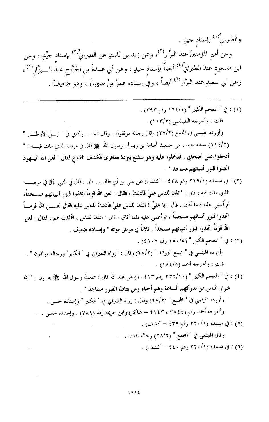 ومنها: "أن من كان قبلكم يتخذون قبور أنبيائهم وصالحيهم مساجد، فلا تتخذوا القبور مساجد، إني أنهاكم عن ذلك".
