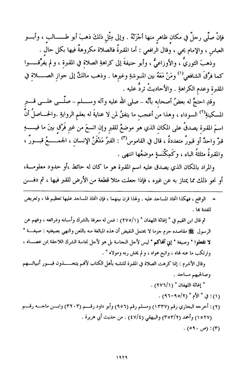 فيها ميت واحد قيل لها مقبرة لغة وعرفا. والمسجد الذي فيه قبر من هذا القبيل، وغلب اسم المسجد عليه لا يرفع صدق اسم المقبرة عليه، وإلا لزم أن المقبرة إن سميت باسم خاص غير اسم المقبرة مثل خزيمة مثلا التي هي مقبرة صنعاء أن لا يثبت لها حكم المقبرة، واللازم باطل فالملزوم مثله.