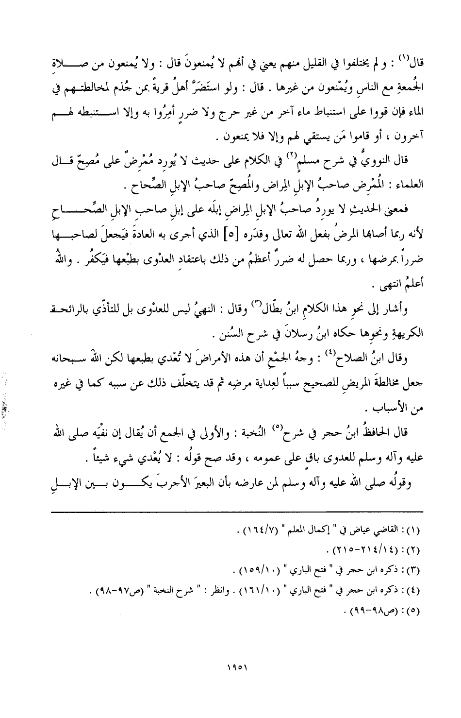 والتاريخ في هذه الأحاديث مجهول ولا مانع من أن يجعل الله سبحانه في بعض الأمراض خاصية يحصل بها العدوى عند المخالطة دون بعض (¬2)، وقد ذهب إلى نحو هذا