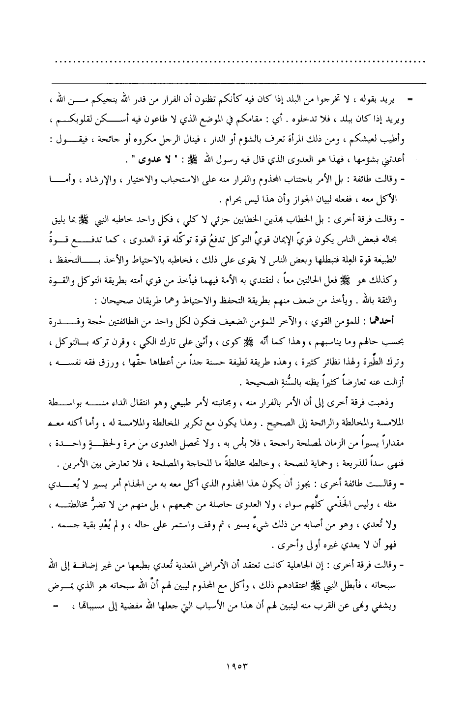 مالك وغيره كما سيأتي في الكلام على الطيرة، وإذا تقرر هذا فالمتوجه على من علم بأن هذا الثوب ونحوه كان لمجذوم أو من مرضه يشبه مرضه في العدوى - أنه لا يبيعه إلا بعد البيان للمشتري أو بعد أن يغسله غسلا يزول به الأثر الذي يخشى تعديه إلى الغير أو التأذي برائحته، ولا شك أن البيع بدون بيان نوع من الغرر الذي ثبت النهي عنه في الأحاديث (¬1) الصحيحة للقطع بأن الغالب من الناس ينفر من السلعة التي يقال أنها لمجذوم أو نحوه أشد النفور ويمتنع من أخذها ولو بأدون الأثمان، وهذا معلوم مشاهد موجود في الطباع، وخلاف ذلك لا يوجد إلا في أندر الأحوال ولا اعتبار [6] بالنادر فأي غرر أعظم من هذا، وأي خدع أشد منه؟.