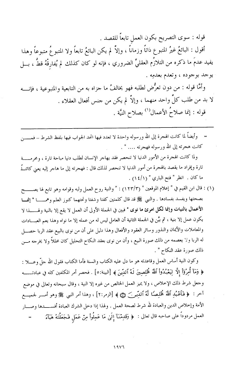 أقول: هذا يستلزم رد العمل لعدم النية، وهو مطلوب من قال بتلك التقديرات، فهو يناسب بقدر الصحة المستلزمة للفساد المرادف للبطلان، لأن العمل إذا كان مردوًدا فهو غير صحيح، وكذلك إذا كان غير صالح فهو فاسد بعدم النية. وفي هذا كفاية.