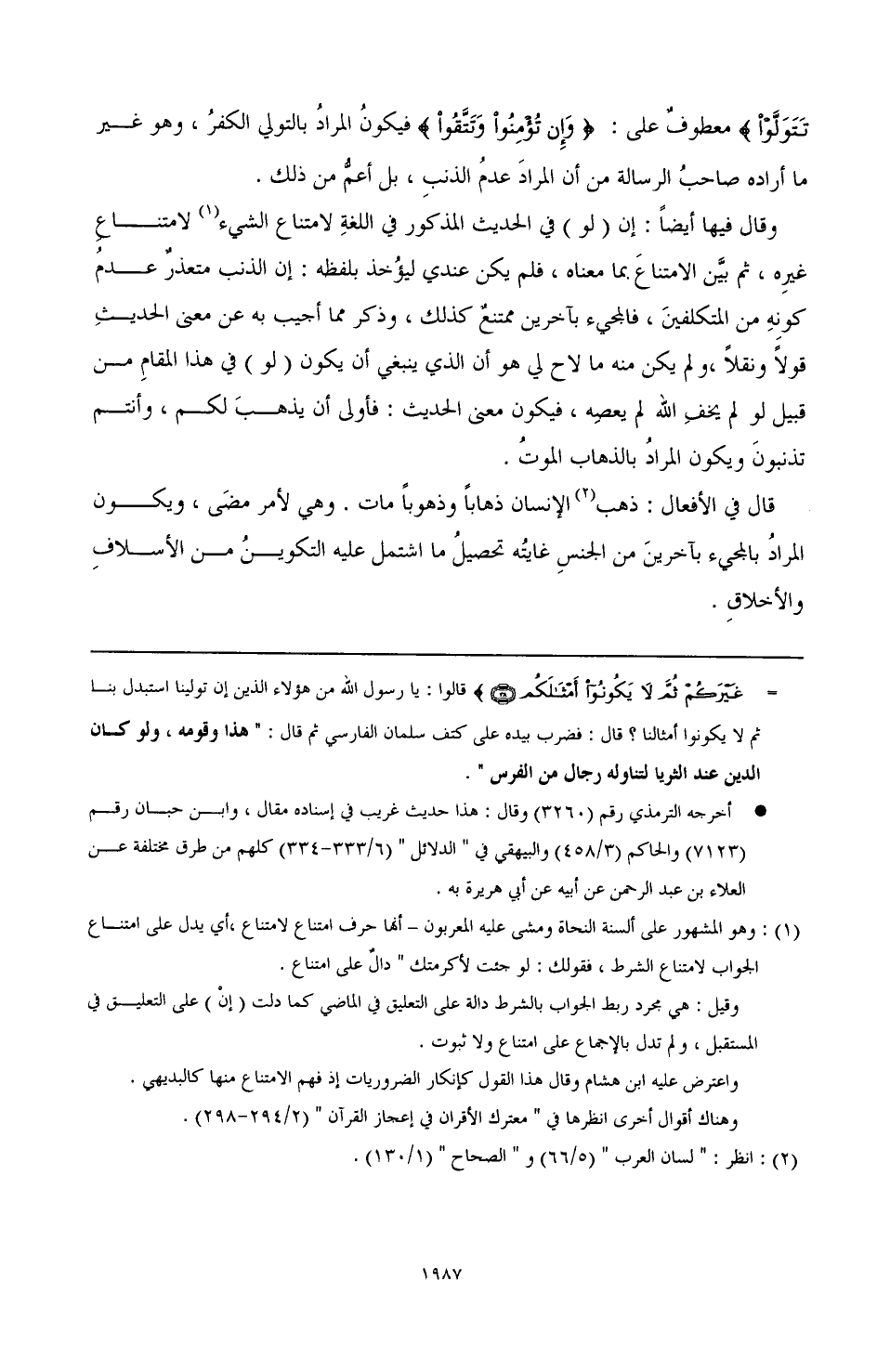 وإن ذلك لازم حكمه. وأبان الحديث وجه أولوية [1] لزوم ذلك من تبيين أن لله في ذلك حكمة، ولا بد منه، لا كما ظنه من فهم أن الذنب مقصود للشارع، وأنه يلزم أن يكون الذنب منهي عنه، مأمور به، فذلك باطل فيجب المصير إلى أي جمع. وإن يكاد أبعد تأويل وارتكاب أبعد تأويل، كيف وهذه وجوه صحيحة صريحة يجب المصير إليها أولى من نسبة التناقض إلى الشريعة المطهرة، صانها الله عن ذلك: {وما ينطق عن الهوى إن هو إلا وحي يوحى} (¬1). هذا ما لاح لي، وفوق كل ذي علم عليم. انتهى السؤال بلفظه. الجواب نقل من خط المولى العلامة الرباني محمد بن علي الشوكاني، كثر الله فوائده.