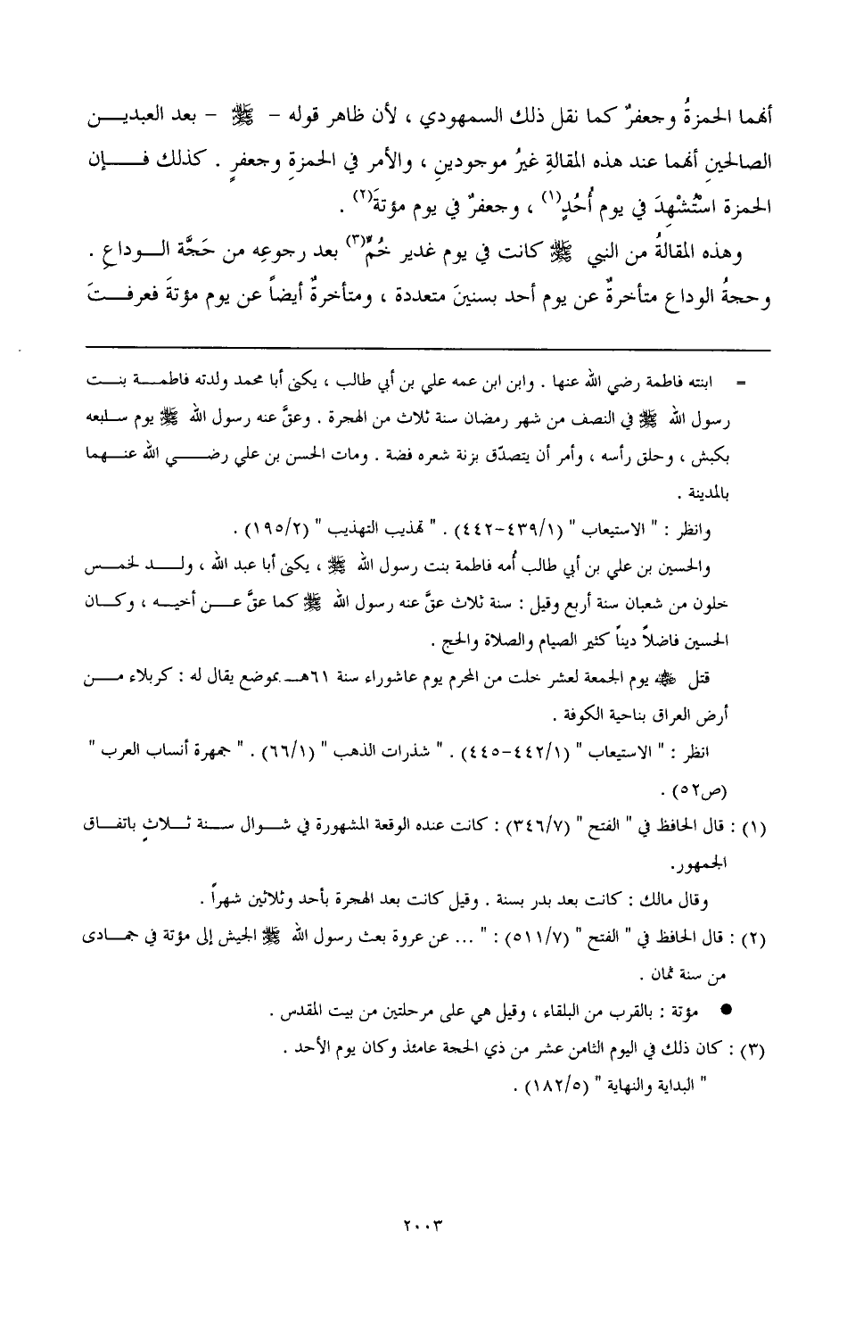 بهذا أنه لا يصح تفسيرها في الحديث بأبي بكر وعمر، لأنهما كانا حيين عند هذه المقالة بلا ريب. ولا بالحسنين لذلك. وأما الخضر وإلياس فإنهما وإن كانا متقدمين ولكن لا وجه لتخصيصهما من بين من تقدمه - صَلَّى اللهُ عَلَيْهِ وَسَلَّمَ - من الأنبياء والصالحين بخلاف الحمزة وجعفر، فإن المخصص لهما واضح لو لم يكن إلا مجرد القرابة القربى، فهذا ما ظهر. والله سبحانه أعلم.