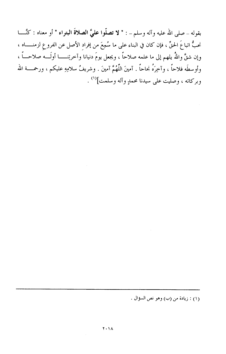 السؤال الأول: عن حديث أبي بن كعب (¬3) لما قال للنبي - صَلَّى اللهُ عَلَيْهِ وَآلِهِ وَسَلَّمَ -: "أجعل لك صلاتي كلها؟ " فقال له النبي - صَلَّى اللهُ عَلَيْهِ وَآلِهِ وَسَلَّمَ -: "إذا تكفى همك، ويغفر ذنبك" هل تنصرف الصلاة المذكورة إلى ذات الأركان؟ أم إلى