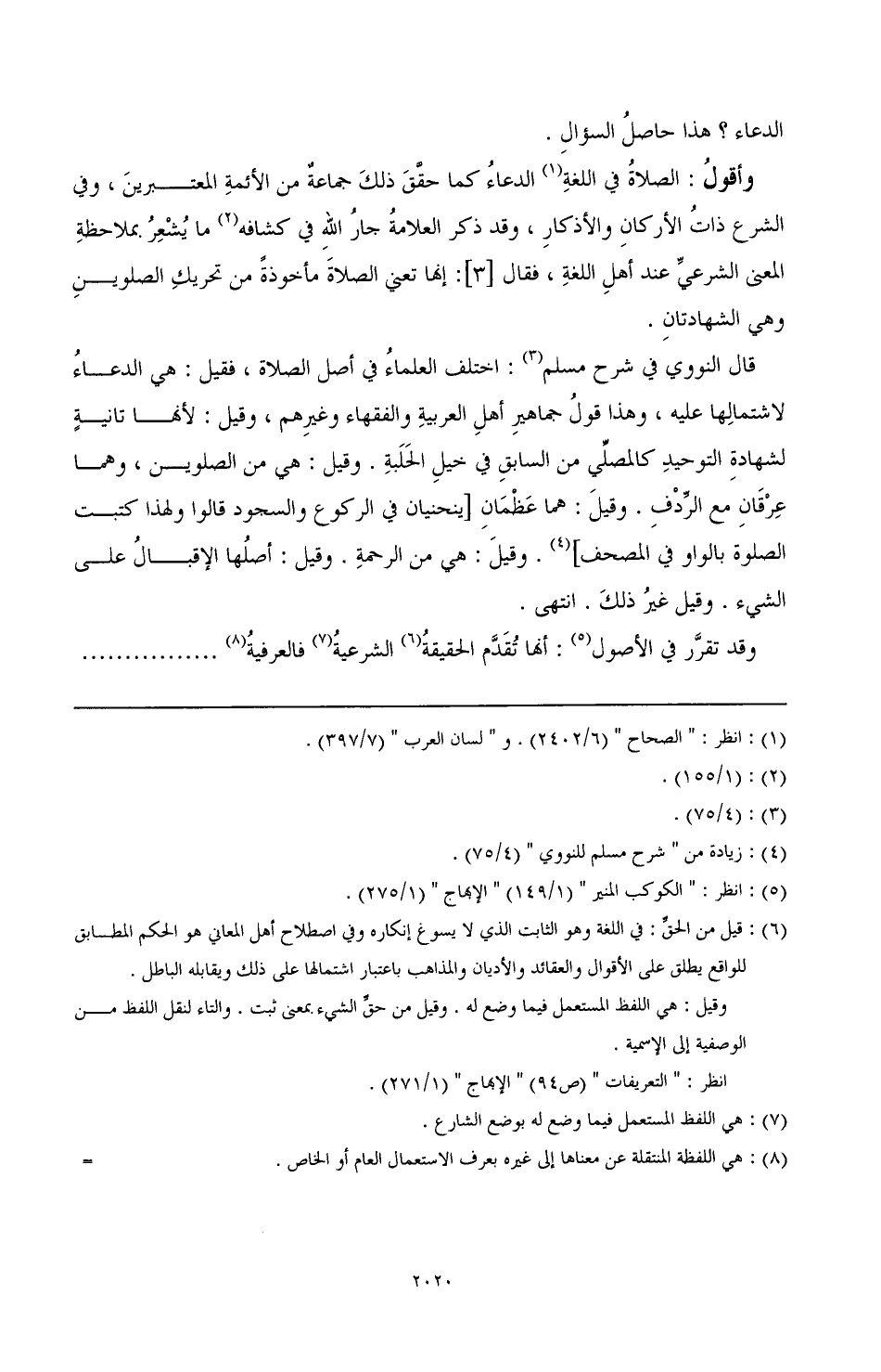 فاللغوية، فلو فرضنا تجرد الصلاة المذكورة في الحديث عن القرائن كان المتعين حملها على الصلاة الشرعية التي هي ذات الأذكار والأركان، ولكنها قد اقترنت في الحديث بما يوجب صرف معناها إلى المدلول اللغوي، وبيانه أن لفظ الحديث على ما ساقه العامري في آخر البهجة عن الترمذي (¬1) وغيره، من طريق أبي بن كعب - رضي الله عنه - قال: كان رسول الله - صَلَّى اللهُ عَلَيْهِ وَآلِهِ وَسَلَّمَ - إذا ذهب ربع الليل قام فقال: "يا أيها الناس اذكروا الله، جاءت الراجفة تتبعها الرادفة، جاء الموت بما فيه"، فقال أبي بن كعب: يا رسول الله، إني أكثر الصلاة عليك، فكم أجعل لك من صلاتي؟ فقال: "ما شئت"، قال: الربع، قال: "ما شئت، وإن زدت فهو خير لك"، قال: يا رسول الله، الثلث؟ قال: "ما شئت، وإن زدت فهو خير لك" قال: النصف، قال: "ما شئت، وإن زدت فهو خير لك" قال: يا رسول الله، فأجعل صلاتي كلها لك؟ قال: "إذن تكفى همك، ويغفر ذنبك" انتهى.