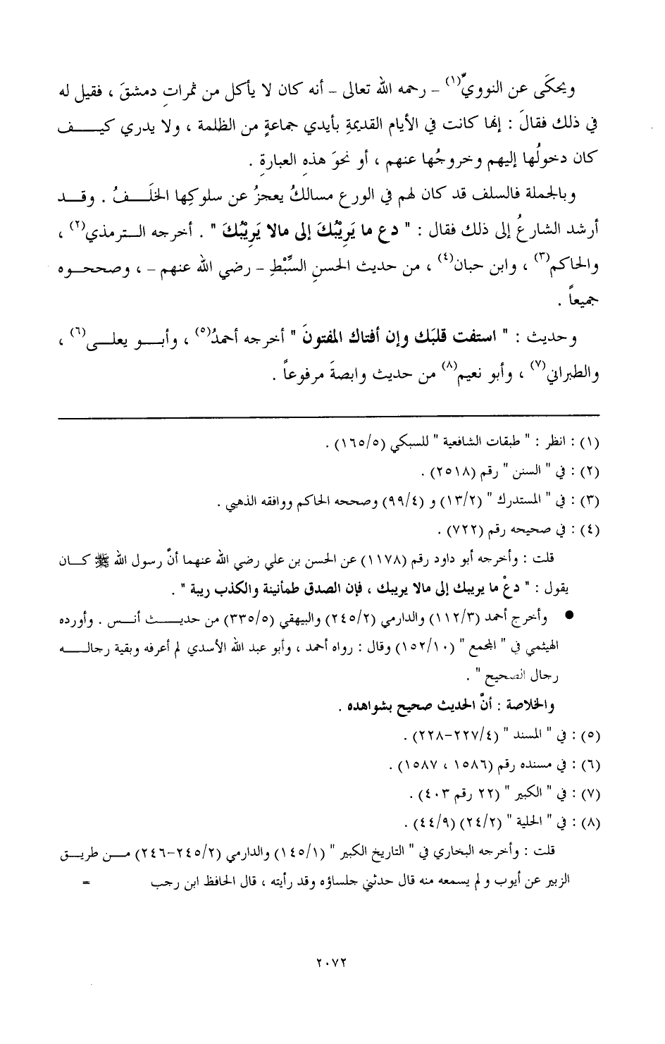 (¬5) أخرجه مسلم في صحيحه رقم (2553) وأحمد (4/ 182) والدارمي (2/ 322) والبخاري في "الأدب المفرد" (1/ 110 - 113) والحاكم (2/ 14). من حديث النواس بن سمعان قال: سألت رسول الله - صَلَّى اللهُ عَلَيْهِ وَسَلَّمَ - عن البر والإثم، فقال: "البر حسن الخلق، والإثم ما حاك في صدرك وكرهت أن يطلع عليه الناس".