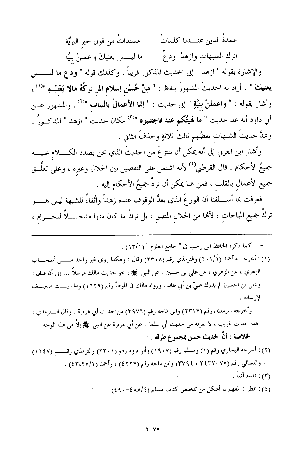 ومن جملة ما يصلح لتفسير الشبهات، ما ورد في النهي عنه حديث ضعيف (¬1) لم يبلغ إلى درجة الاعتبار، ولا ظهر فيه الوضع (¬2)، وإنما كان من جملة الشبهات، لأن العلة التي