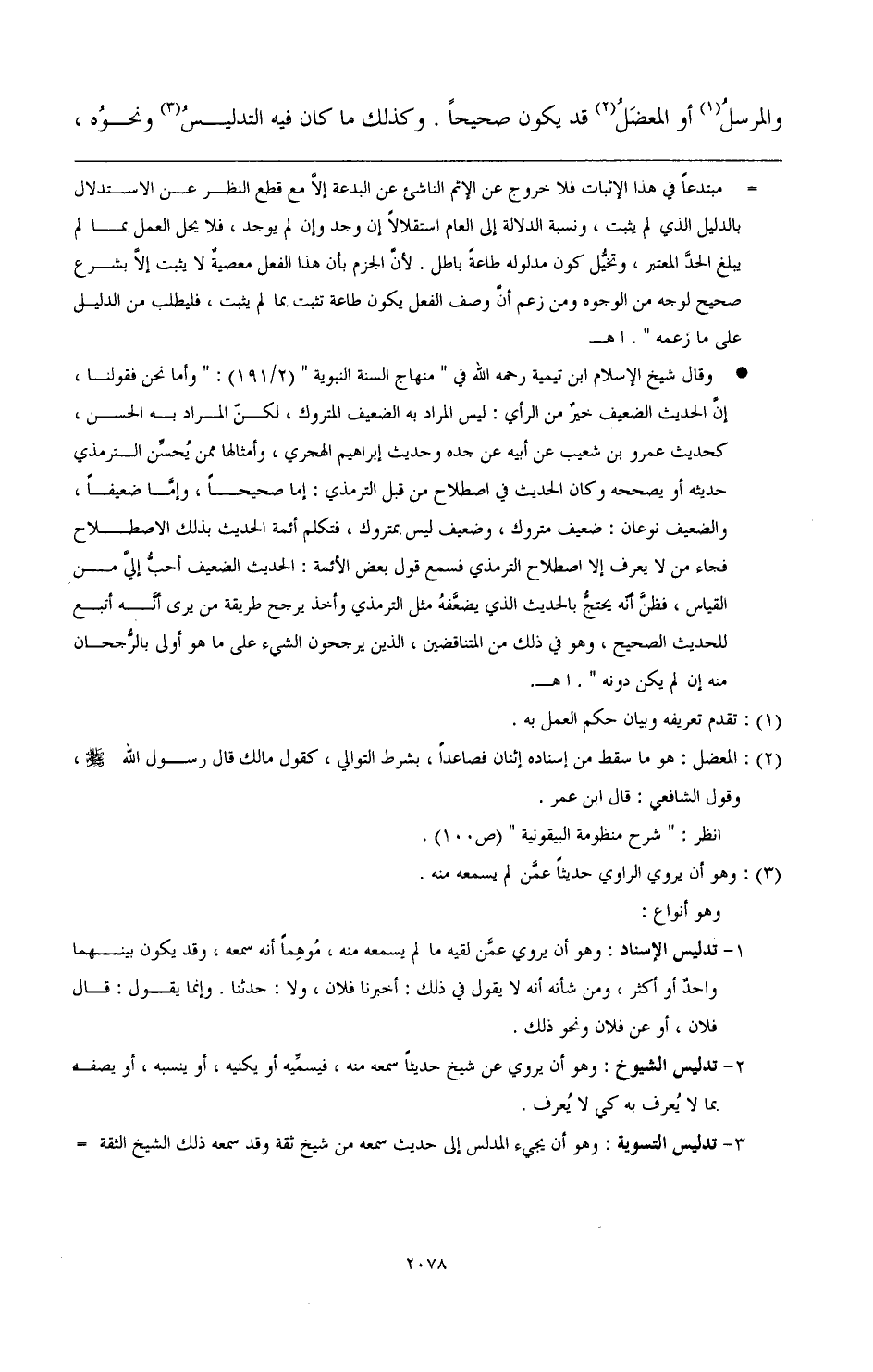 ومثل ذلك أحاديث أهل البدع، فهذا القسم والذي قبله وإن لم أقف على من يقول أنهما من جملة الشبهات فهما عندي من أعظمها، لأن أقل أحوال الحديث الضعيف لعلة من تلك العلل أن يكون مشكوكا فيه، ومثله الشك في الإباحة.