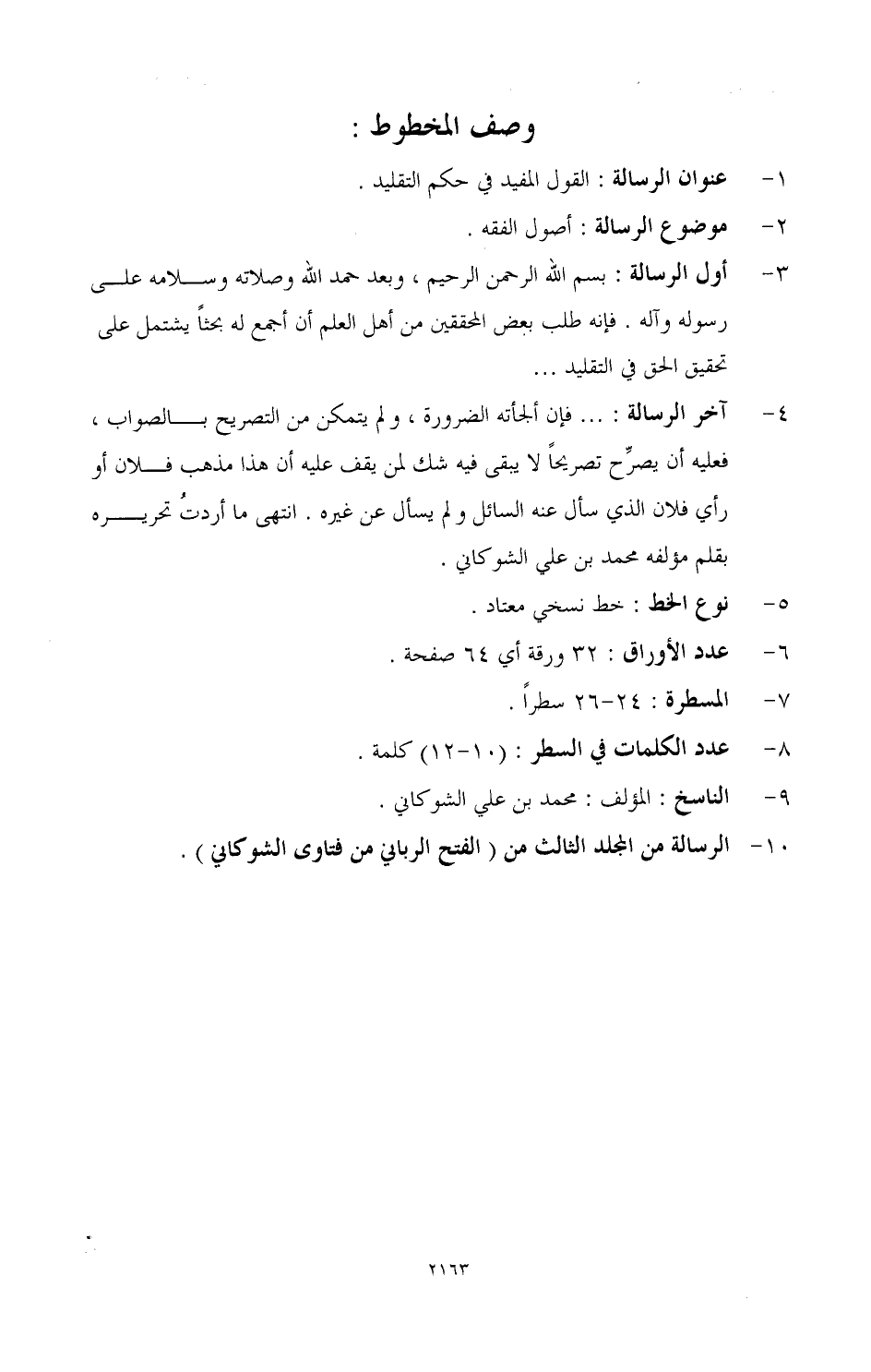10 - الرسالة من المجلد الثالث من (الفتح الرباني من فتاى الشوكاني).