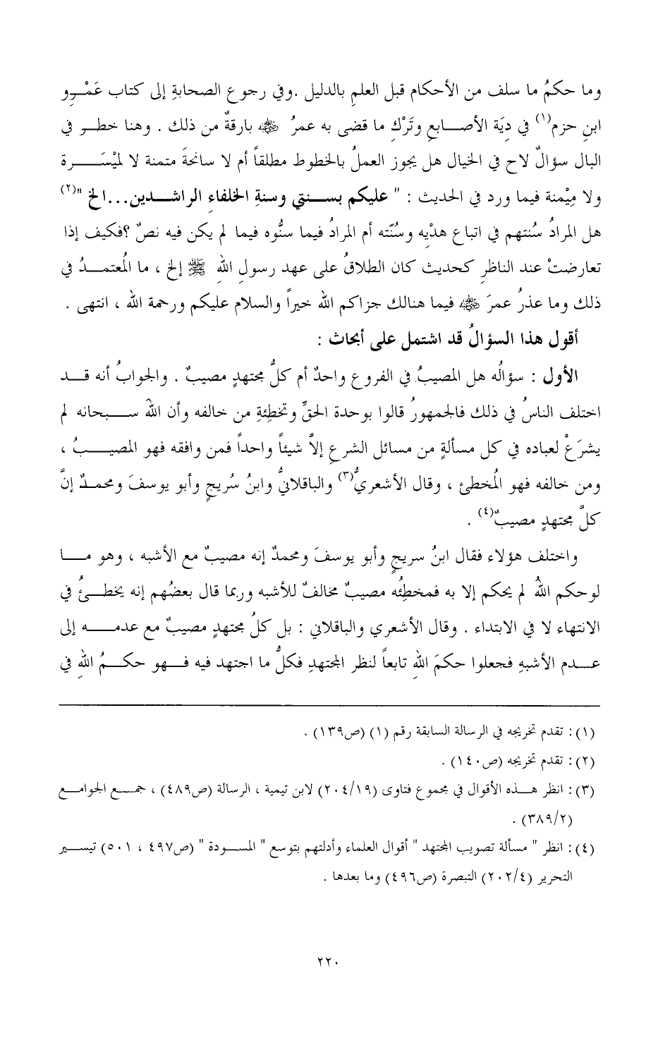 (¬4) انظر " مسألة تصويب المجتهد " أقوال العلماء وأدلتهم بتوسع " المسودة " (ص 497، 501) تيسير التحرير (4/ 202) التبصرة (ص 496) وما بعدها.