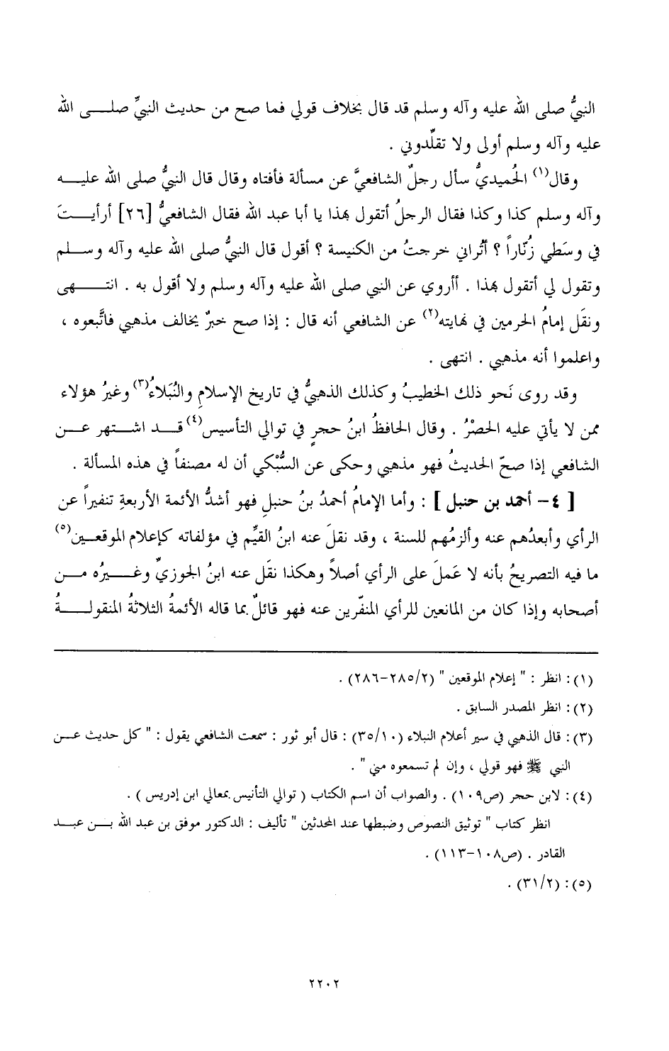 النبي- صَلَّى اللهُ عَلَيْهِ وَآلِهِ وَسَلَّمَ- قد قال بخلاف قولي فما صح من حديث النبي- صَلَّى اللهُ عَلَيْهِ وَآلِهِ وَسَلَّمَ- أولى ولا تقلدوني.