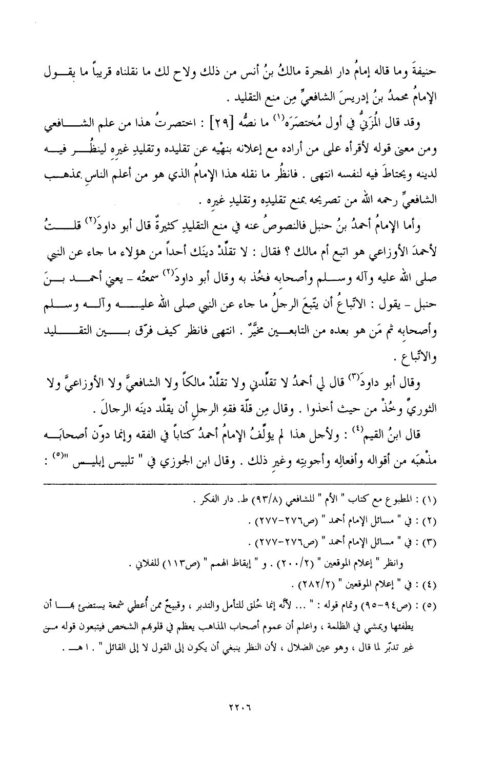 (¬6) (ص94 - 95) وتمام قووله:» .... لأنه إنما خلق للتأمل والتدبر، وقبيح ممن أعطى شمعة يستضئ بها أن ثطفئها ويمشي في الظلمة، واعلم أن عموم أصحاب المذهب يعظم في قلوبهم الشخص فيتبعون قوله من غير تدبر لما قال، وهو عين الضلالة، لأن النظر ينبغي أن يكون إلى القول لا إلى القائل». أهـ