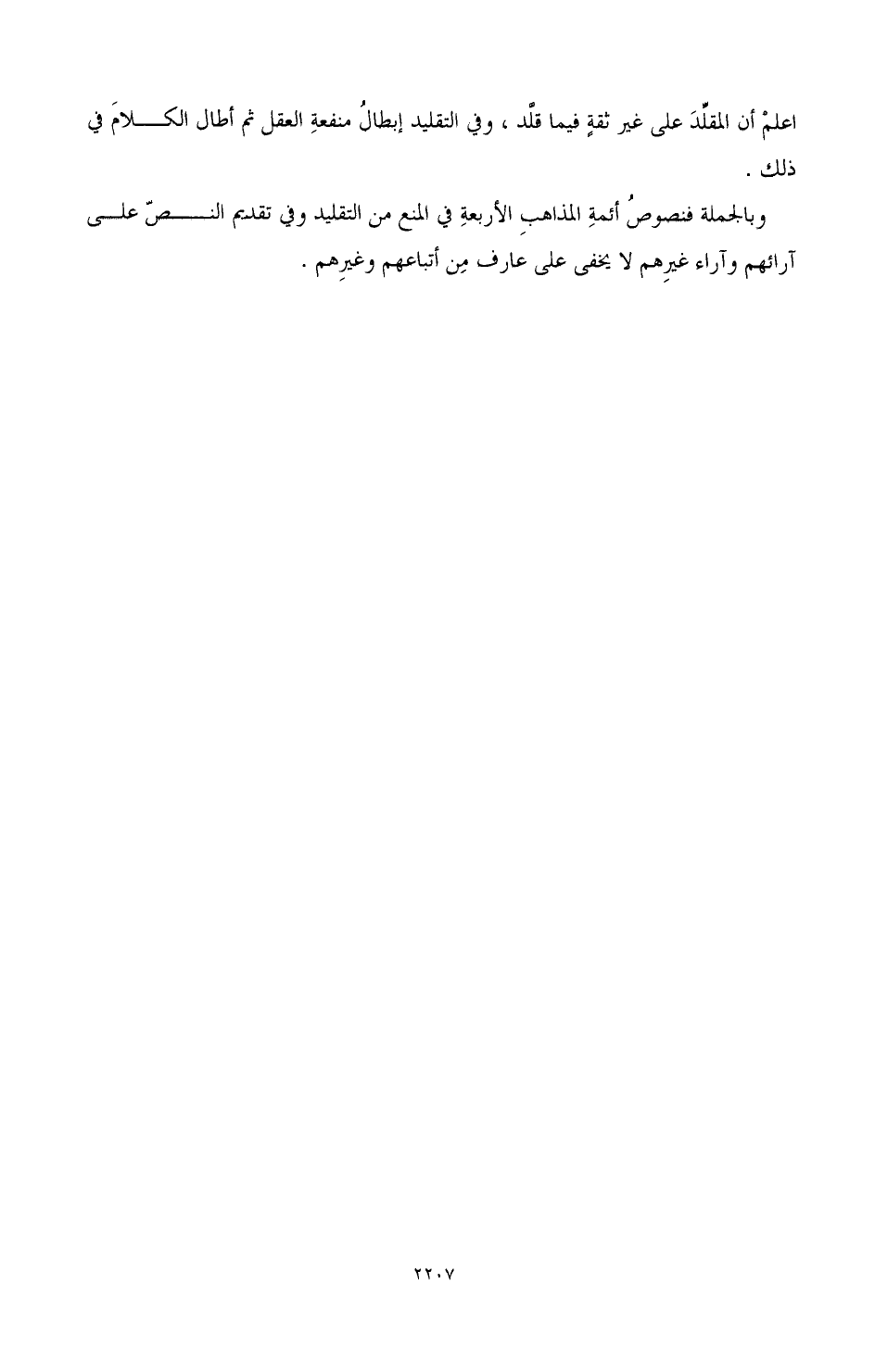 وبالجملة فنصوص أئمة المذاهب الأربعة في المنع من التقليد وفي تقديم النص على آرائهم وآراء غيرهم لا يخفي على عار من أتباعهم وغيرهم.