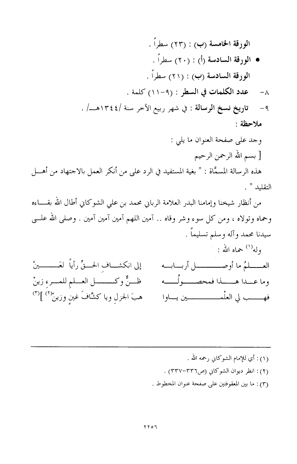 (¬2) انظر ديوان الشوكاني (ص 336 - 337).