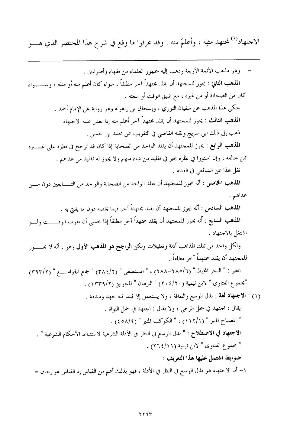 الاجتهاد في الاصطلاح: «بذل الوسع في النظر في الأدلة الشرعية لاستنباط الأحكام الشرعية» «مجموع الفتاوى» لابن تيمية (11/ 264).