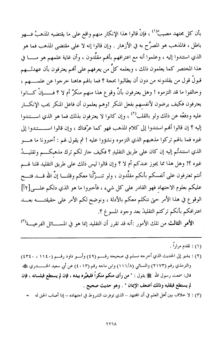 الأمرالثالث: من تلك الأمور: أنه قد تقرر أن التقليد إنما هو في المسائل الفرعية (¬3)