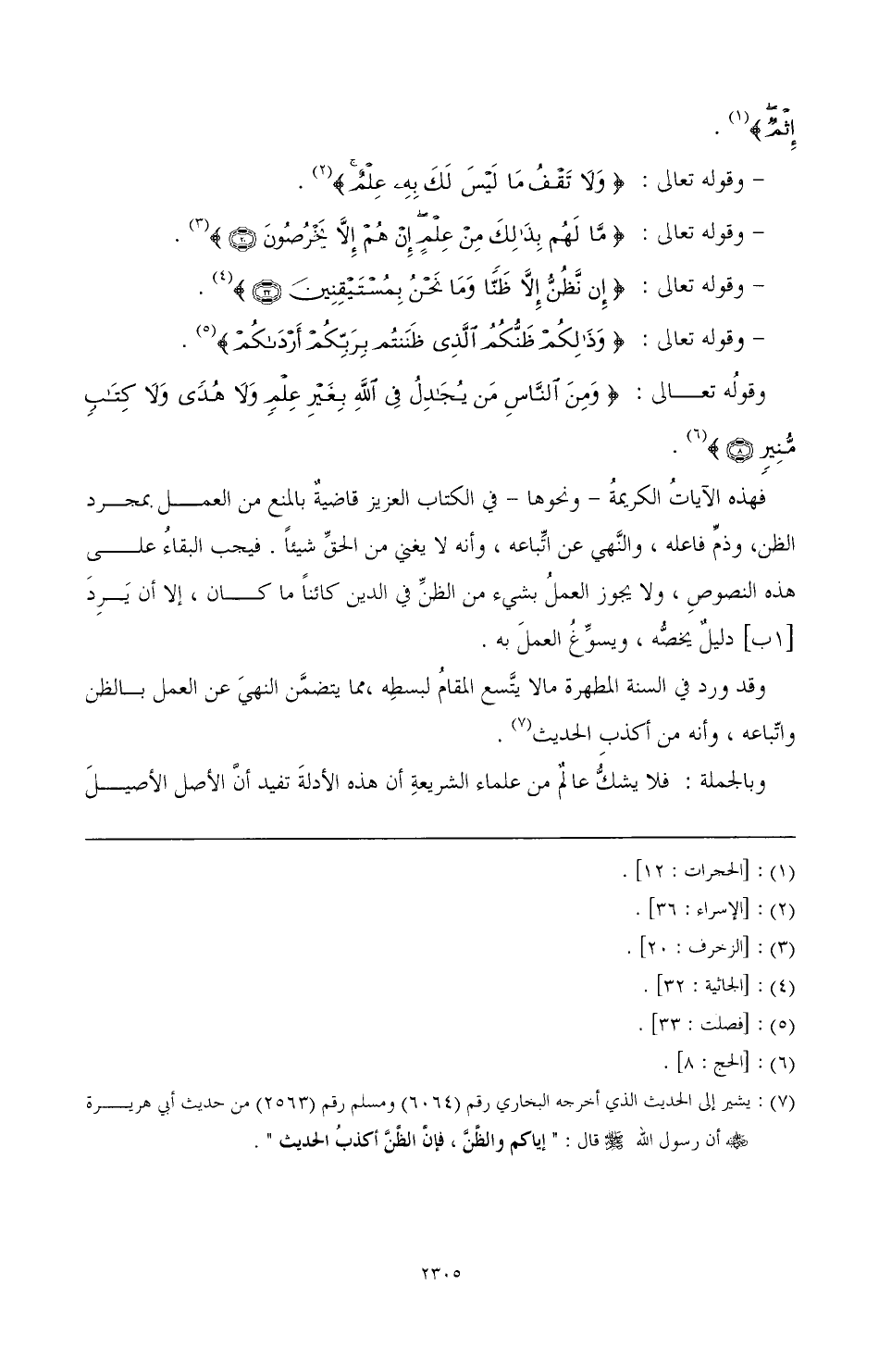 (¬7) يشير إلى الحديث الذي أخرجه البخاري رقم (6064) ومسلم رقم (2563) من حديث أبي هريرة رضي الله عنه أن رسول الله صَلَّى اللهُ عَلَيْهِ وَسَلَّمَ قال: «إياكم والظن، فإن الظن أكذب الحديث»