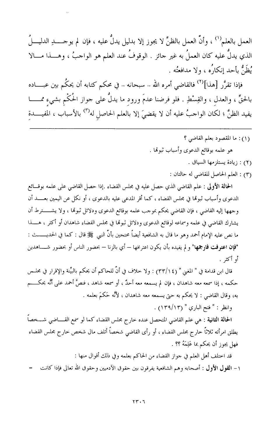 (¬3) العلم الحاصل للقاضي له حالتان: