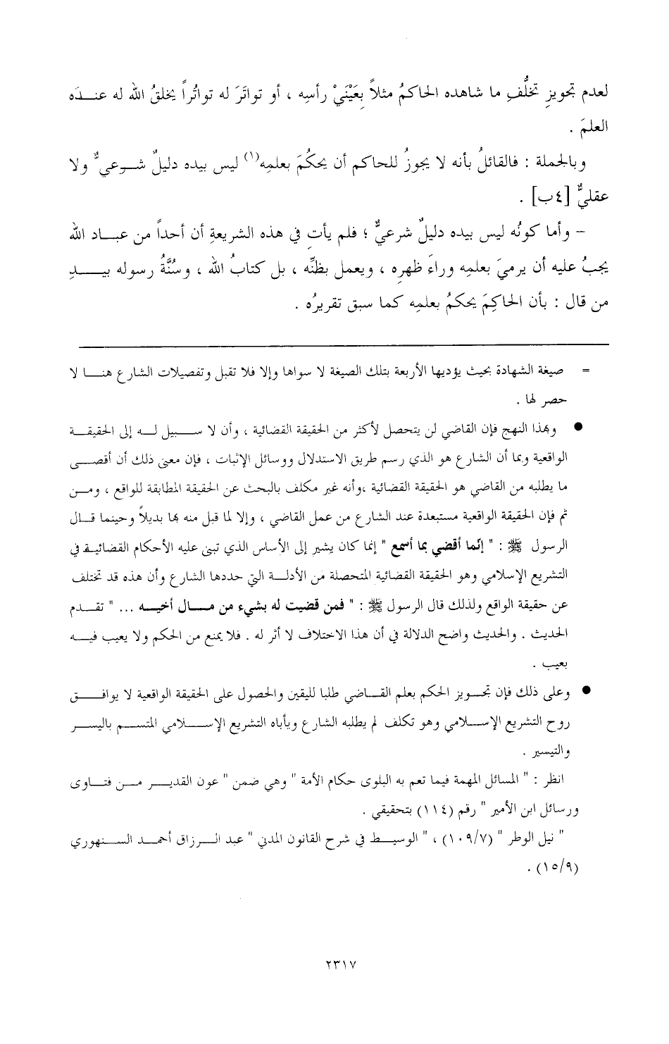 وأما كونه ليس بيده دليل شرعي؛ فلم يأت في هذه الشريعة أن أحدًا من عباد الله يجب عليه أن يرمي بعمله وراء ظهره، ويعمل بظنه، بل كتاب الله، وسنة رسوله بيده من قال: بأن الحاكم يحكم بعلمه كما سبق تقريره.