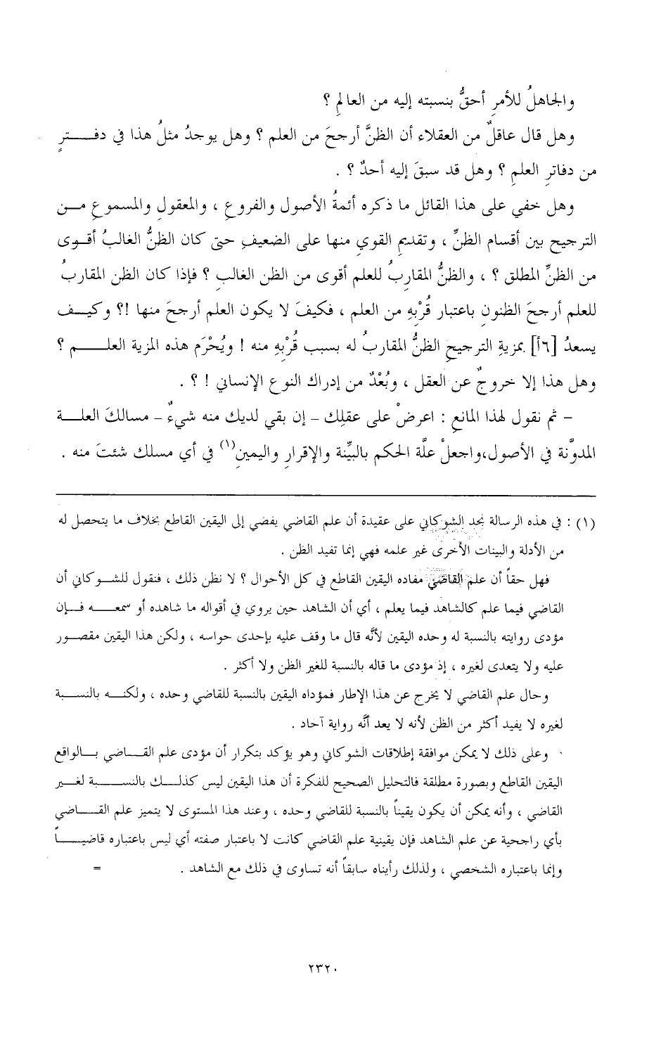(¬1) في هذه الرسالة نجد الشوكاني على عقيدة أن علم القاضي يفضي إلى اليقين القاطع بخلاف ما يتحصل له من الأدلة والبينات الأخرى غير علمه فهي إنما تفيد الظن.