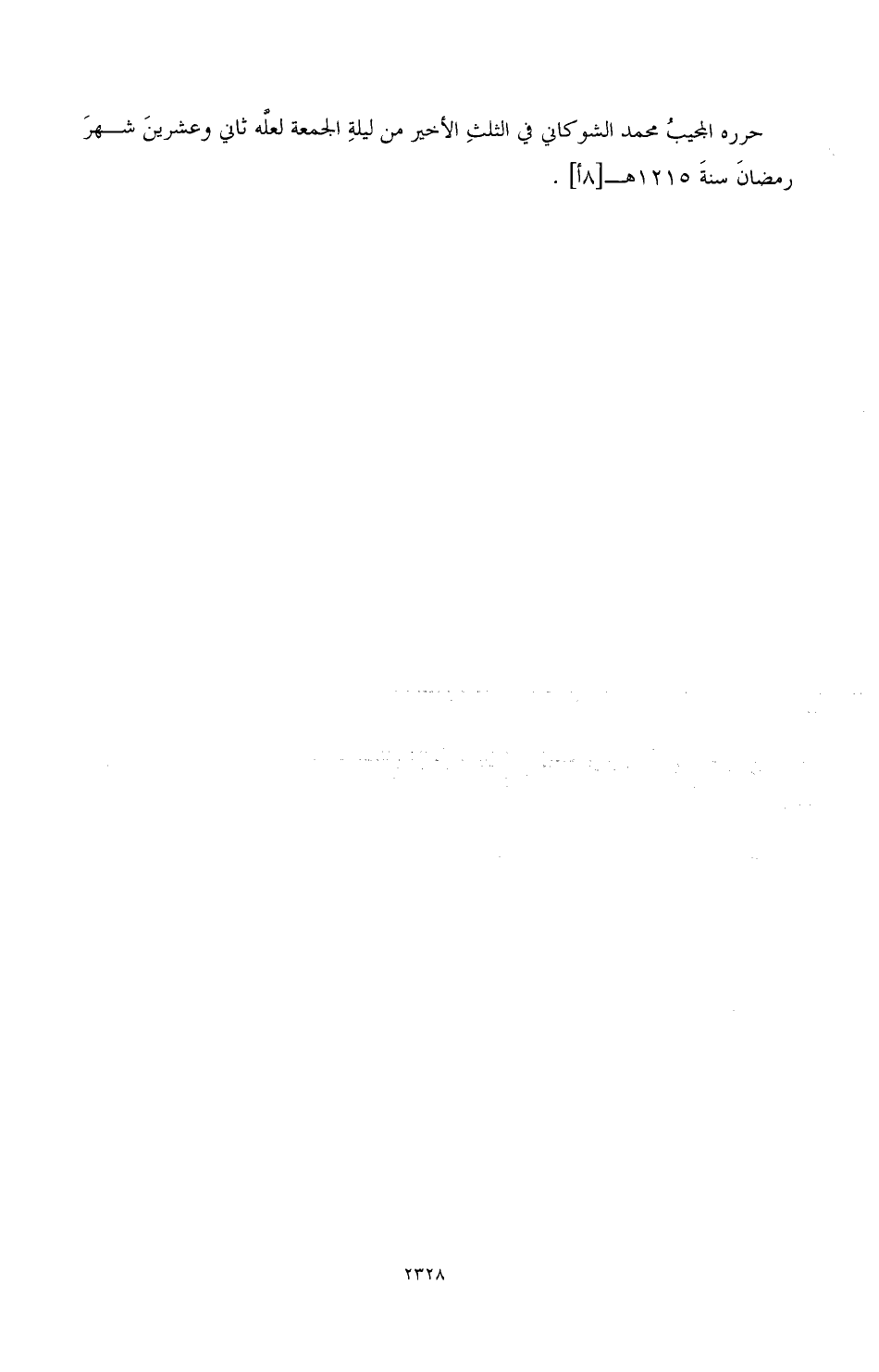 حرره المجيب محمد الشوكاني في الثلث الأخير من ليلة الجمعة لعله ثاني وعشرين شهر رمضان سنة 1215هـ[8أ].