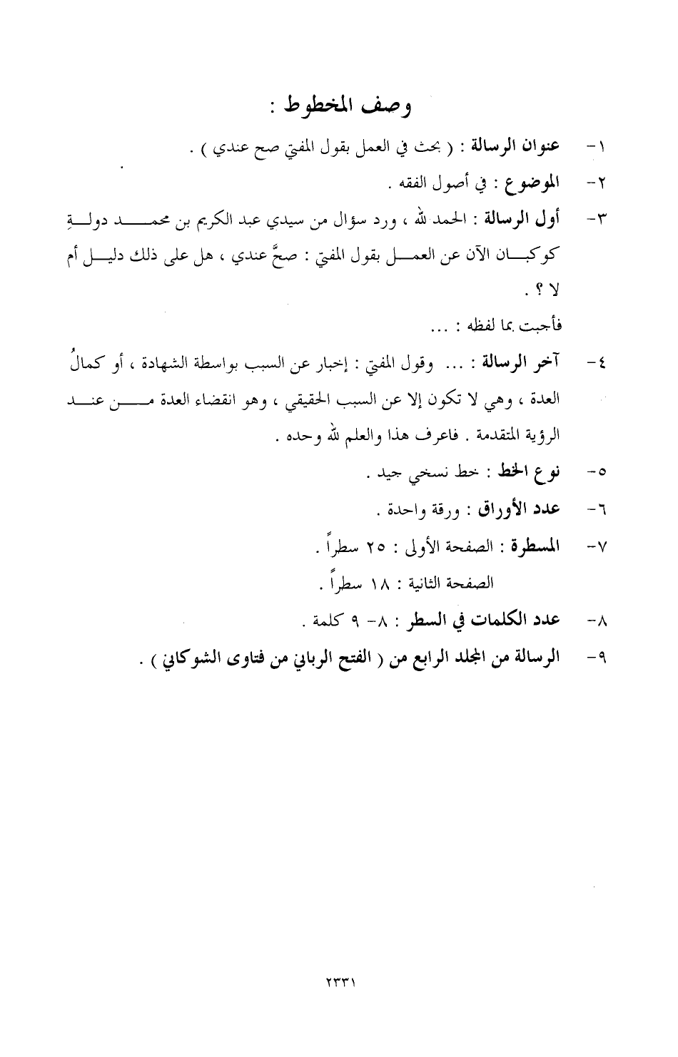 9 - الرسالة من المجلد الرابع من (الفتح الرباني من فتاوى الشوكاني).