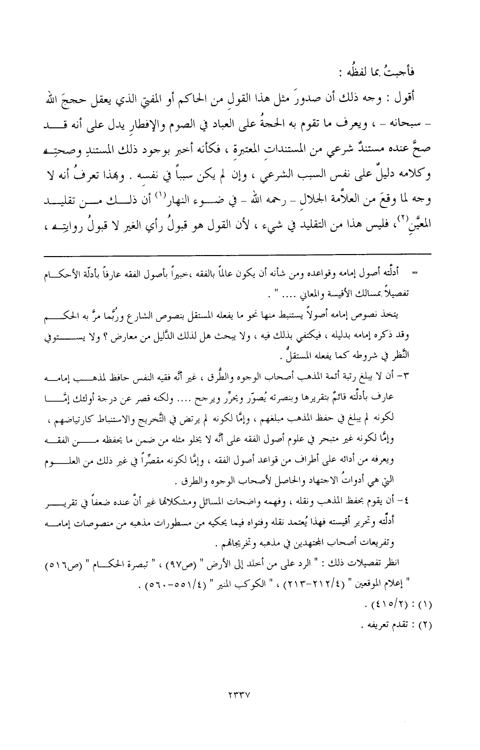 أقول: وجه ذلك أن صدور مثل هذا القول ممن الحاكم أو المفتي الذي يعقل حجج الله - سبحانه -، ويعرف ما تقوم به الحجة على العباد في الصوم والإفطار يدل على أنه قد صح عنده مستندٌ شرعي من المستندات المعتبرة، فكأنه أخبر بوجود ذلك المستند وصحته وكلامه دليلٌ على نفس السبب الشرعي، وإن لم يكن سببًا في نفسه. وبهذا تعرف أنه لا وجه لما وقع من العلامة الجلال- رحمه الله- في ضوء النهار (¬1) أن ذلك من تقليد المعين (¬2)، فليس هذا من التقليد في شيء، لأن القول هو قبول رأي الغير لا قبول روايته،