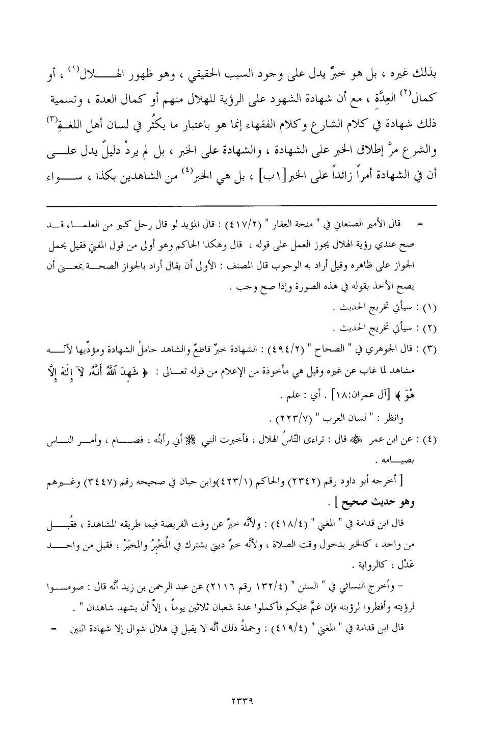 بذلك غيره، بل هو خبرٌ يدل على وجود السبب الحقيقي، وهو ظهور الهلال (¬1)، أو كمال (¬2) العدة، مع أن شهادة الشهود على الرؤية للهلال منهم أو كمال العدة، وتسمية ذلك شهادة في كلام الشارع وكلام الفقهاء إنما هو باعتبار ما يكثر في لسان أهل اللغة (¬3) والشرع مر إطلاق الخبر على الشهادة، والشهادة على الخبر، بل لم يرد دليل يدل على أن في الشهادة أمرًا زائدًا على الخبر [1ب]، بل هي الخبر (¬4) من الشاهدين بكذا، سواء