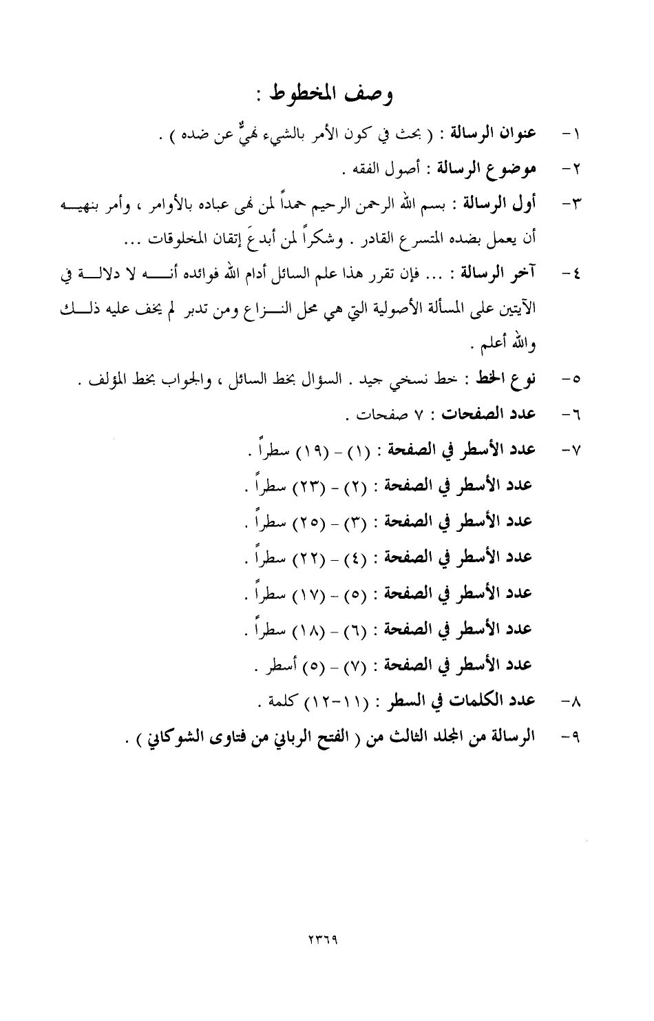 9 - الرسالة من المجلد الثالث من (الفتح الرباني من فتاوى الشوكاني).