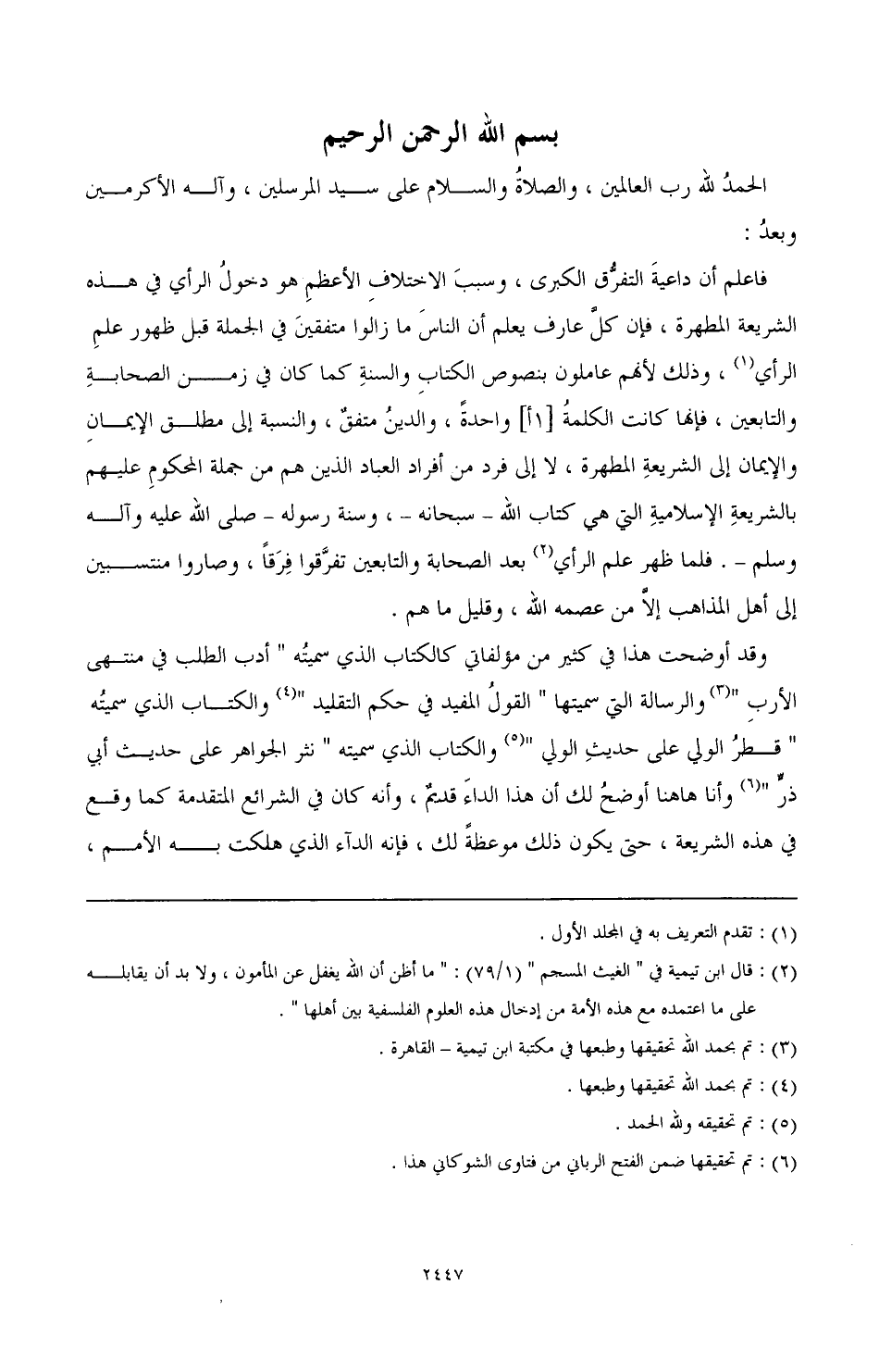 (¬2) تم بحمد الله تحقيقها وطبعها في مكتبة ابن تيمية- القاهرة.% والرسالة التي سميتها «القول المفيد في حكم التقليد».
