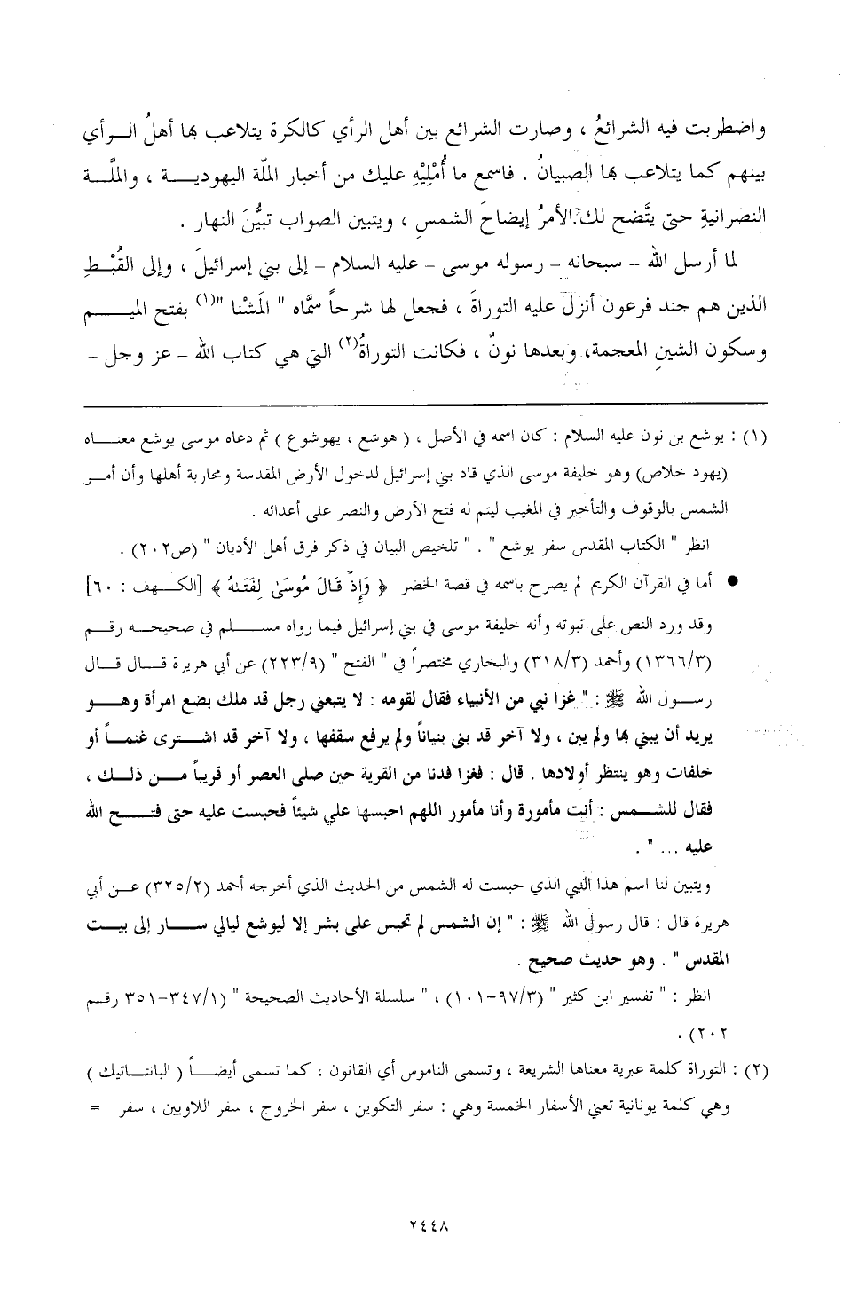 انظر: «تفسير ابن كثير» (3/ 97 - 101)، «سلسلة الأحاديث الصحيحة» (1/ 347 - 351 رقم 202).% بفتح الميم وسكون الشين المعجمة، وبعدها نون، فكانت التوراة