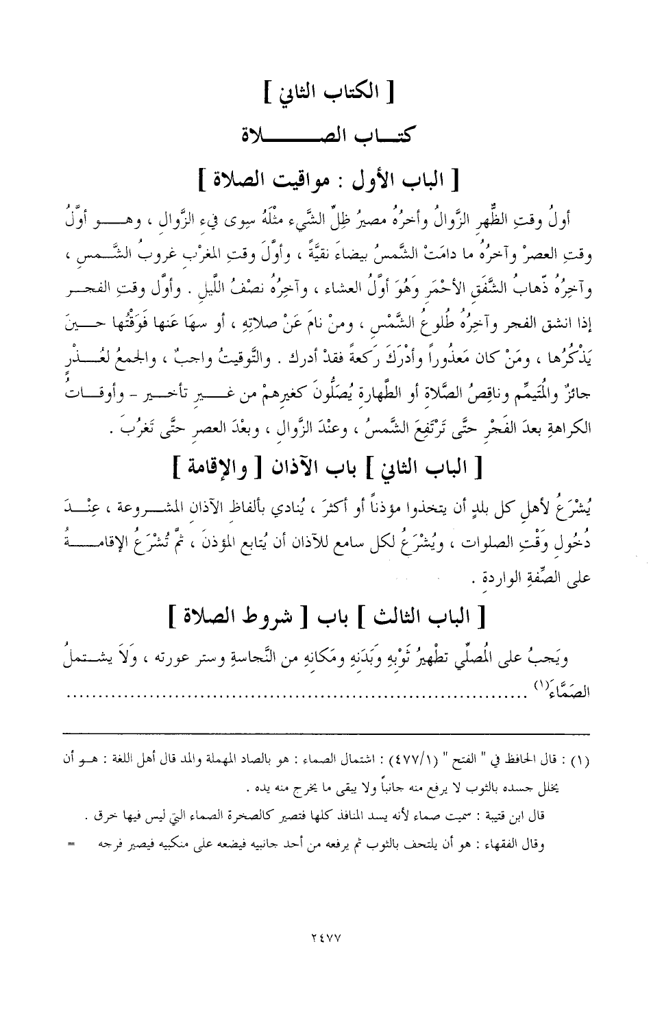 أول وقت الظهر الزوال وأخره مصير ظل الشيء مثله سوى فيء الزوال، وهو أول وقت العصر وآخره ما دامت الشمس بيضاء نقية، وأول وقت المغرب غروب الشمس، وآخره ذهاب الشفق الأحمر وهو أول العشاء، وآخره نصف الليل. وأول وقت الفجر إذا انشق الفجر وآخره طلوع الشمس، ومن نام عن صلاته، أو سها عنها فوقتها حين يذكرها، ومن كان معذوراً وأدرك ركعة فقد أدرك. والتوقيت واجب، والجمع لعذر جائز والمتيمم وناقص الصلاة أو الطهارة يصلون كغيرهم من غير تأخير، وأوقات الكراهة بعد الفجر حتى ترتفع الشمس، وعند الزوال، وبعد العصر حتى المغرب.
