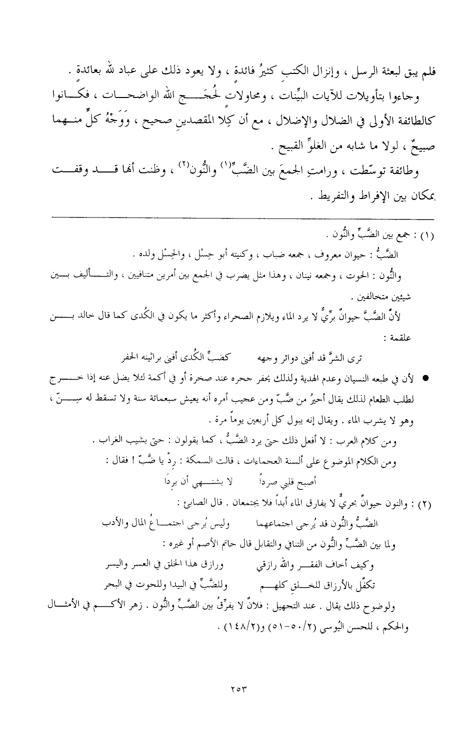 (¬2) والنون حيوان بحري لا يفارق الماء أبدا فلا يجتمعان. قال الصابئ: