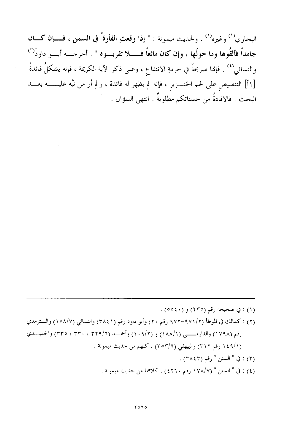 (¬2) كمالك في الموطأ (2/ 971 - 972 رقم 20) وأبو داود رقم (3841) والنسائي (7/ 178) والترمذي رقم (1789) والدارمي (1/ 188) و (2/ 109) وأحمد (6/ 335،330،329) والحميدي (1/ 149 رقم 312) والبيهقي (9/ 353). كلهم من حديث ميمونة.